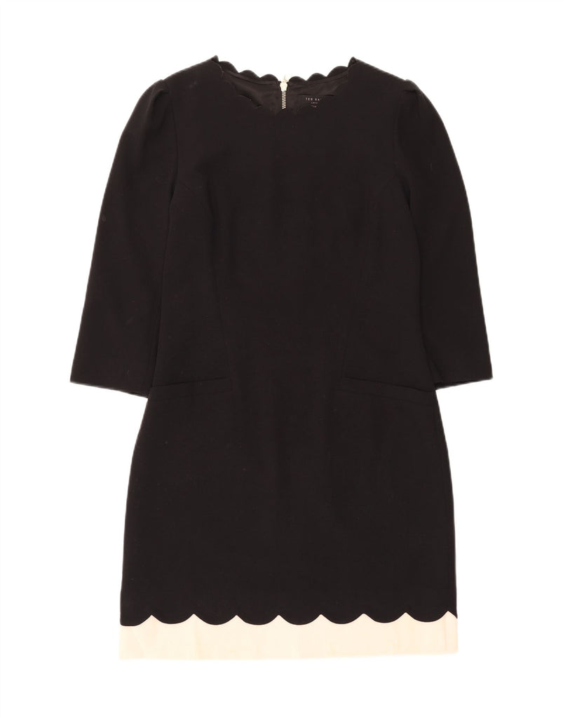 TED BAKER Womens 3/4 Sleeve Sheath Dress Size 2 Small Black Colourblock