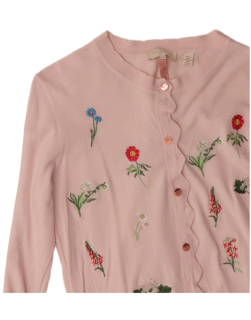 TED BAKER Womens Cardigan Sweater Size 1 XS Pink Floral Cotton