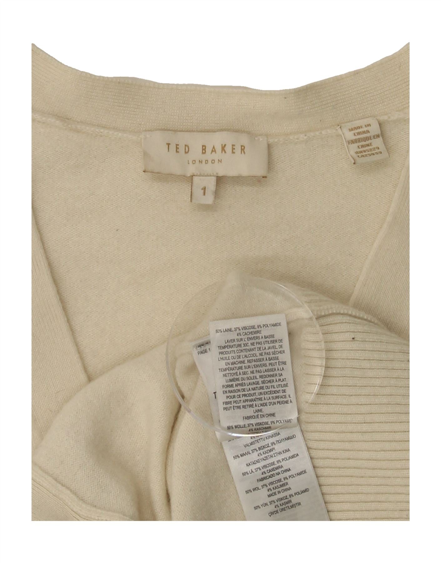 TED BAKER Womens Crop Cardigan Sweater Size 1 XS Off White Wool