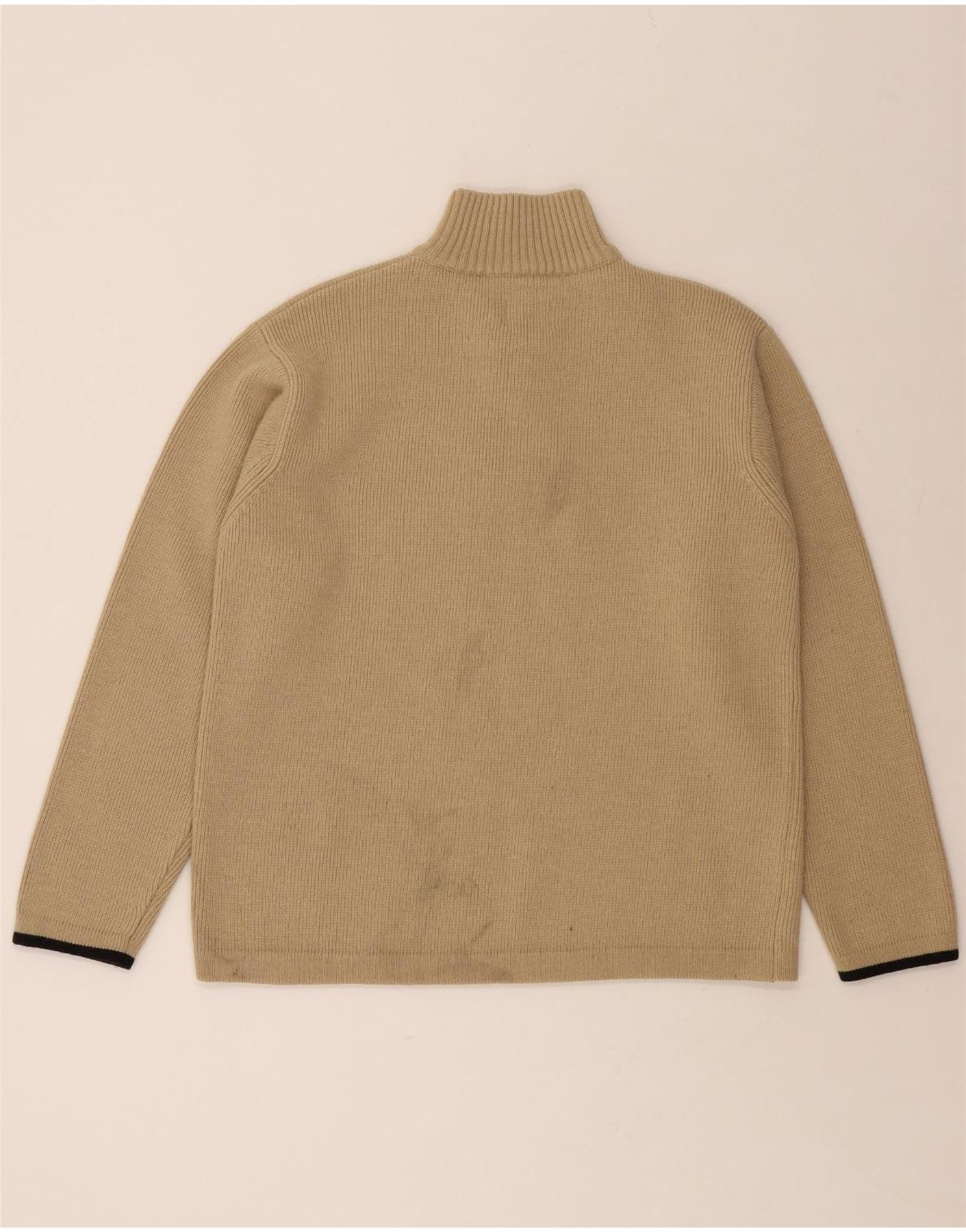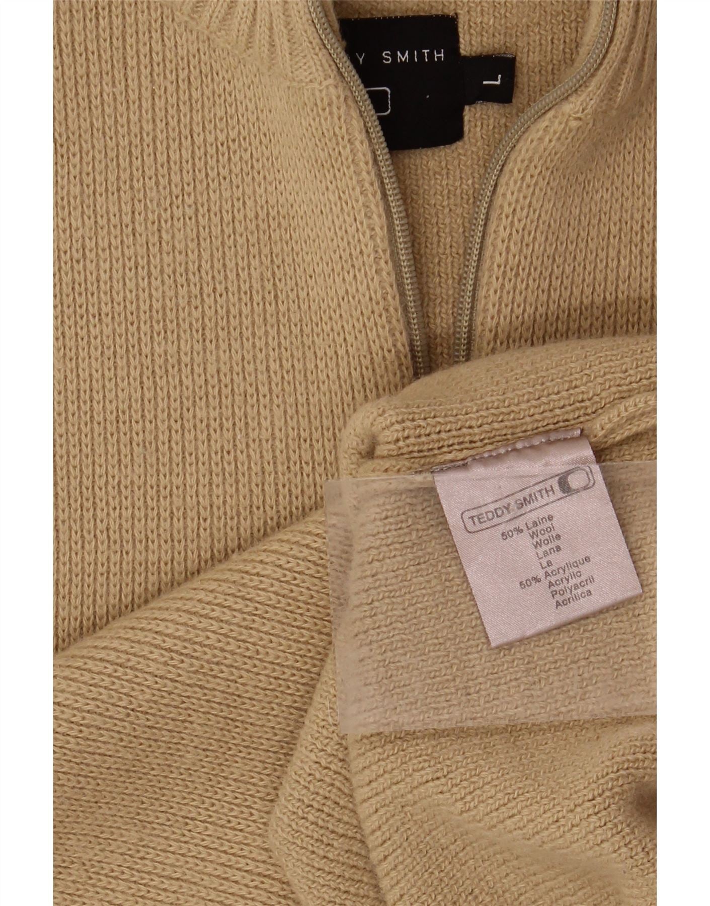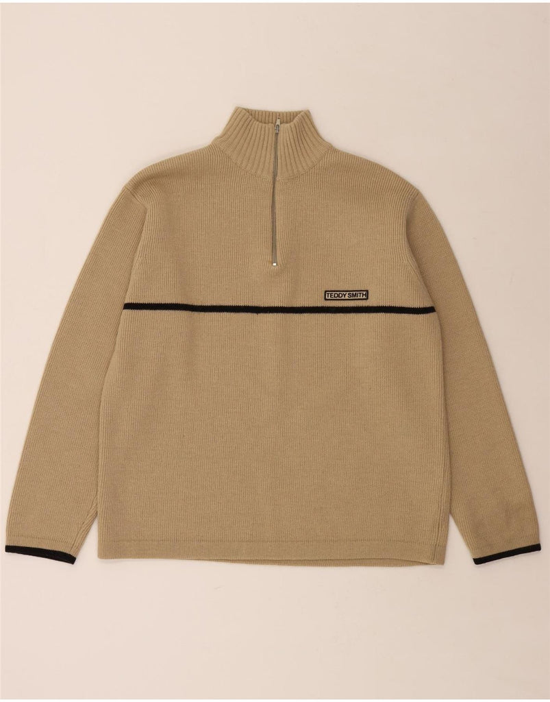 TEDDY SMITH Mens Zip Neck Jumper Sweater Large Beige Wool
