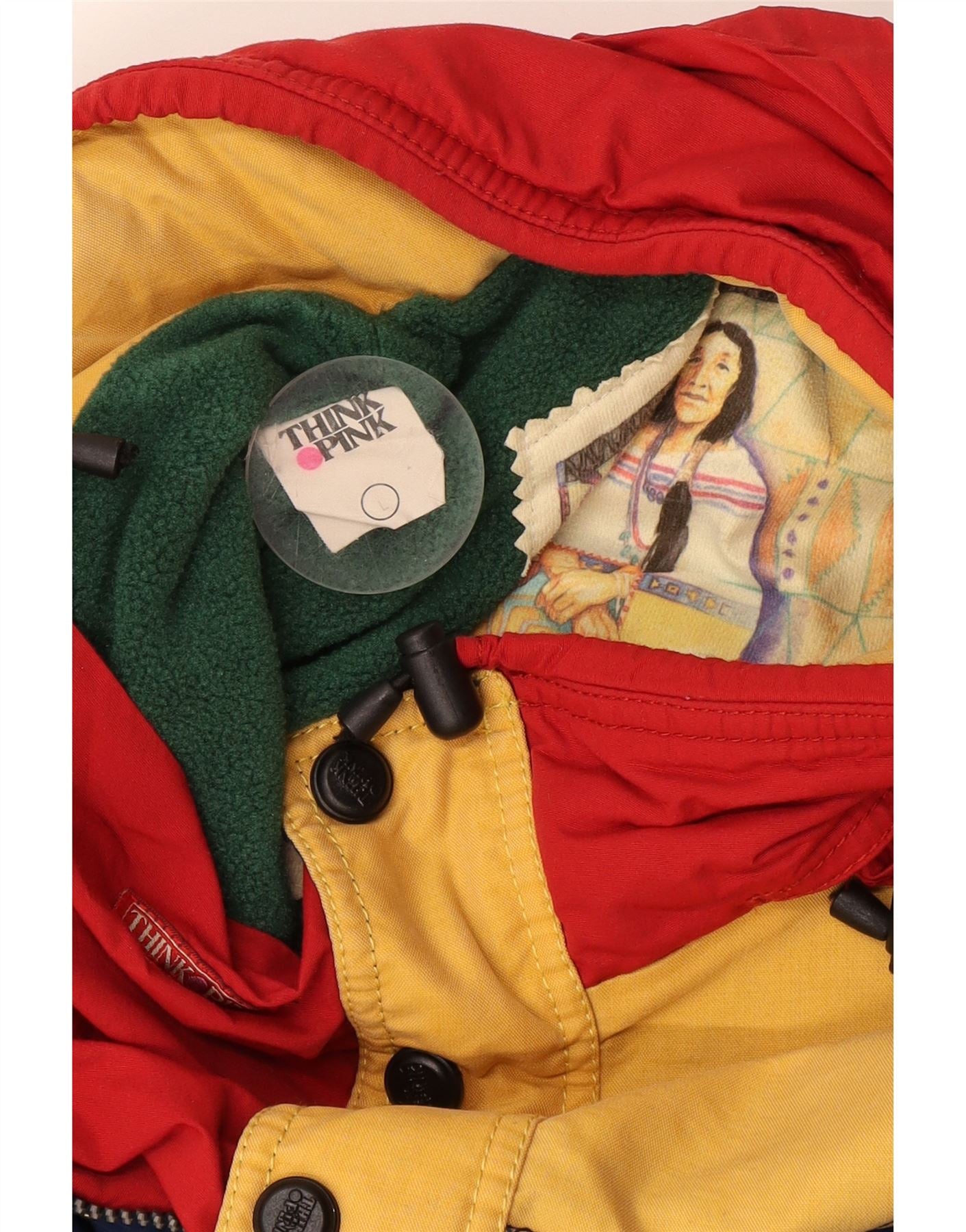 - Описание ИИ: Мужская куртка-анорак Think Pink изготовлена из прочного тканого материала и имеет яркий разноцветный дизайн в желтом, синем и красном цветах. Вырез с капюшоном, длинные рукава, пуловер и частичная планка на пуговицах. Регулярная посадка обеспечивает комфорт и легкость движений. В комплект входят практичные карманы и видна заметная деталь логотипа. На спине имеется надпись POWWOW, подчеркивающая характерный этнический стиль.