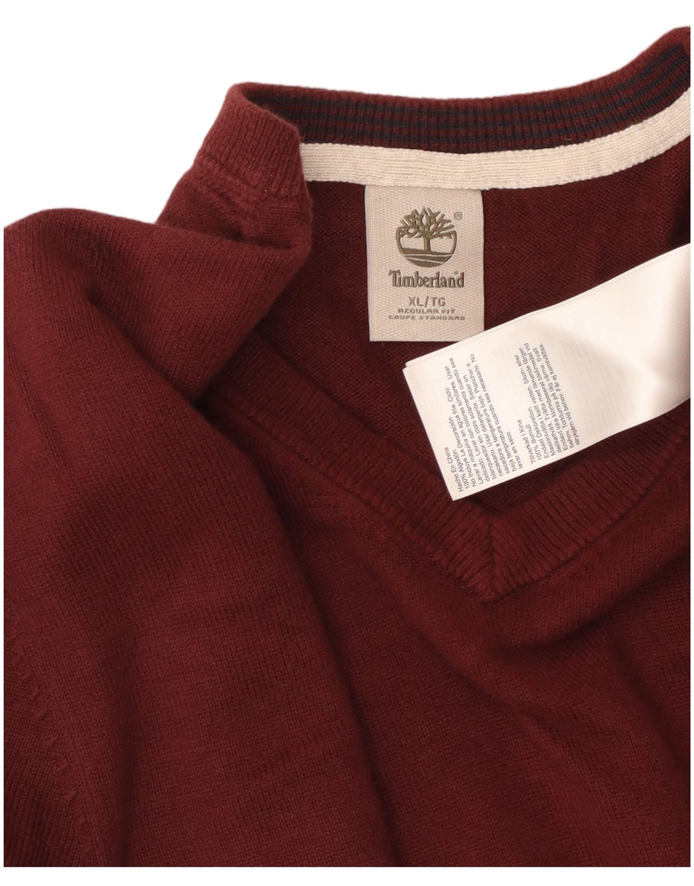 TIMBERLAND Мужской джемпер стандартного кроя с V-образным вырезом XL, бордовый хлопок