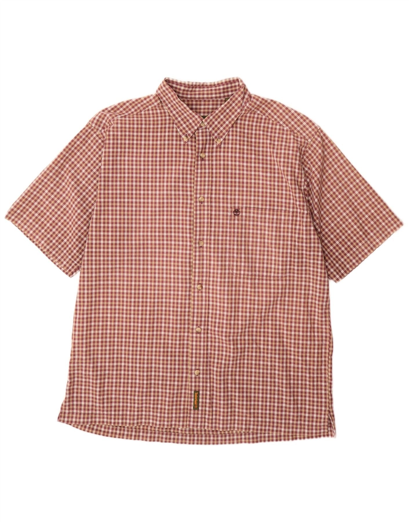 TIMBERLAND Мужская рубашка с коротким рукавом XL, бордовая клетка, хлопок