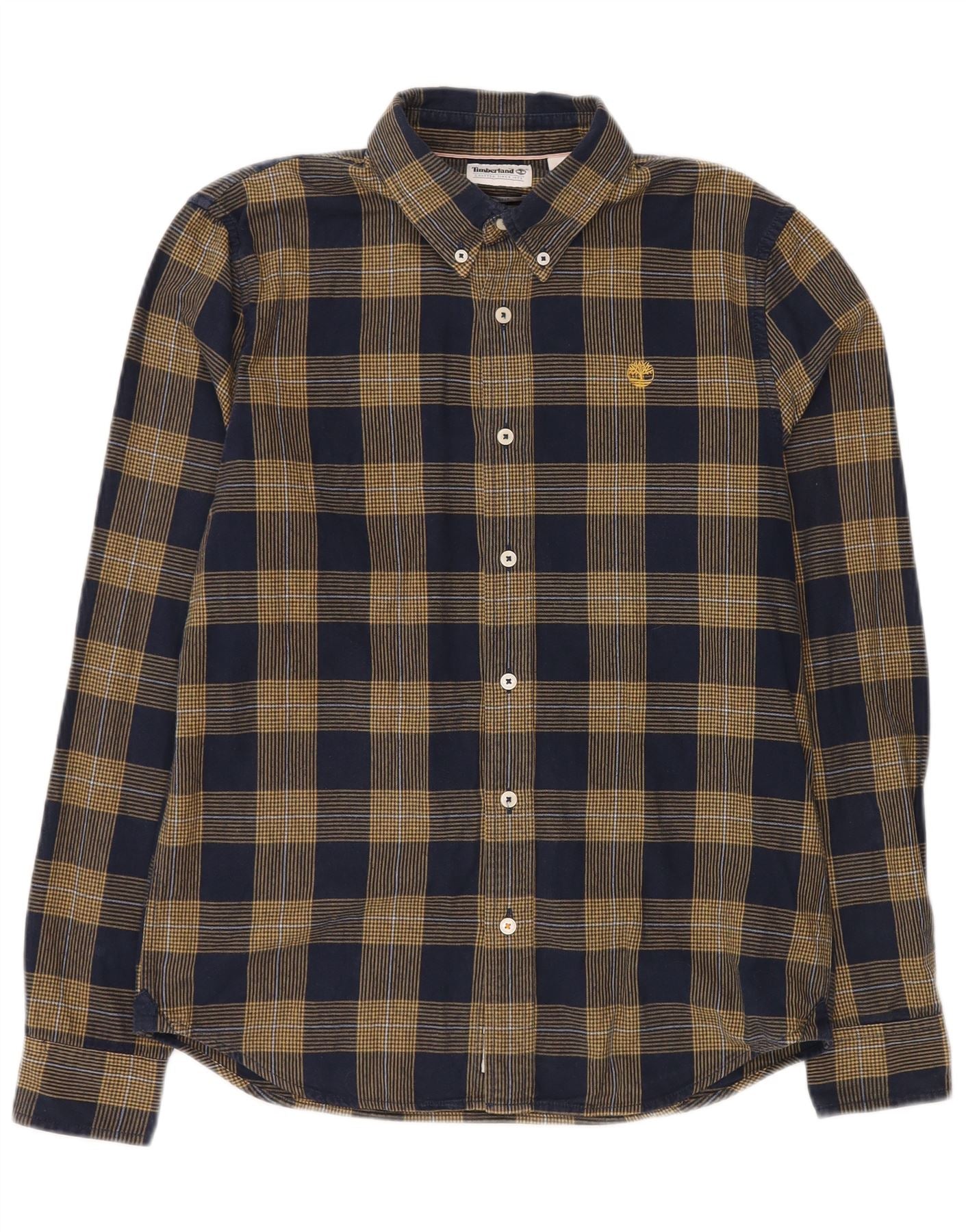 TIMBERLAND Мужская фланелевая рубашка приталенного кроя, маленькая, темно-синяя, хлопковая клетка