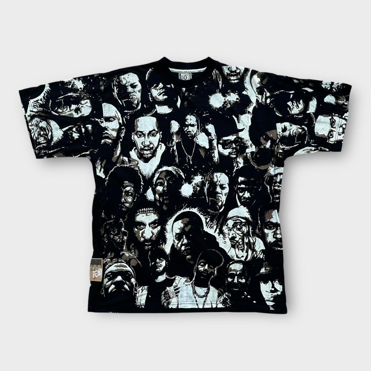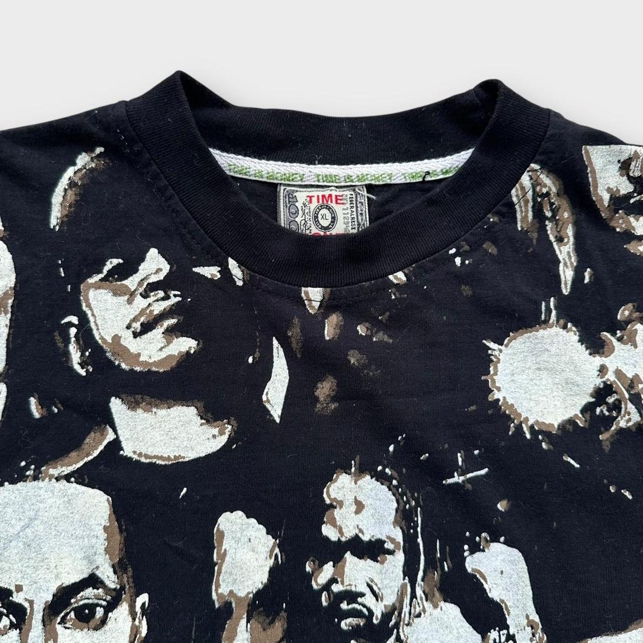 Черная винтажная футболка конца 90-х — начала 2000-х Time & Money с принтом в стиле хип-хоп/рэп