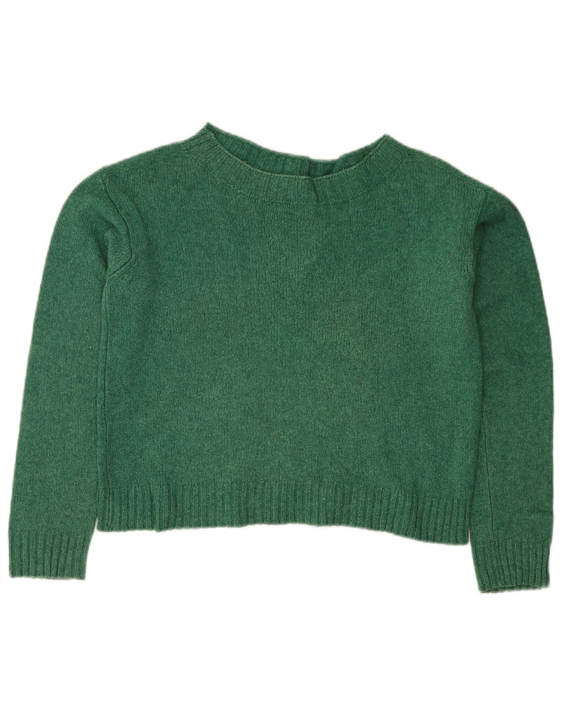 TOAST Womens Crop Crew Neck Jumper Sweater UK 14 Medium Green Lambswool