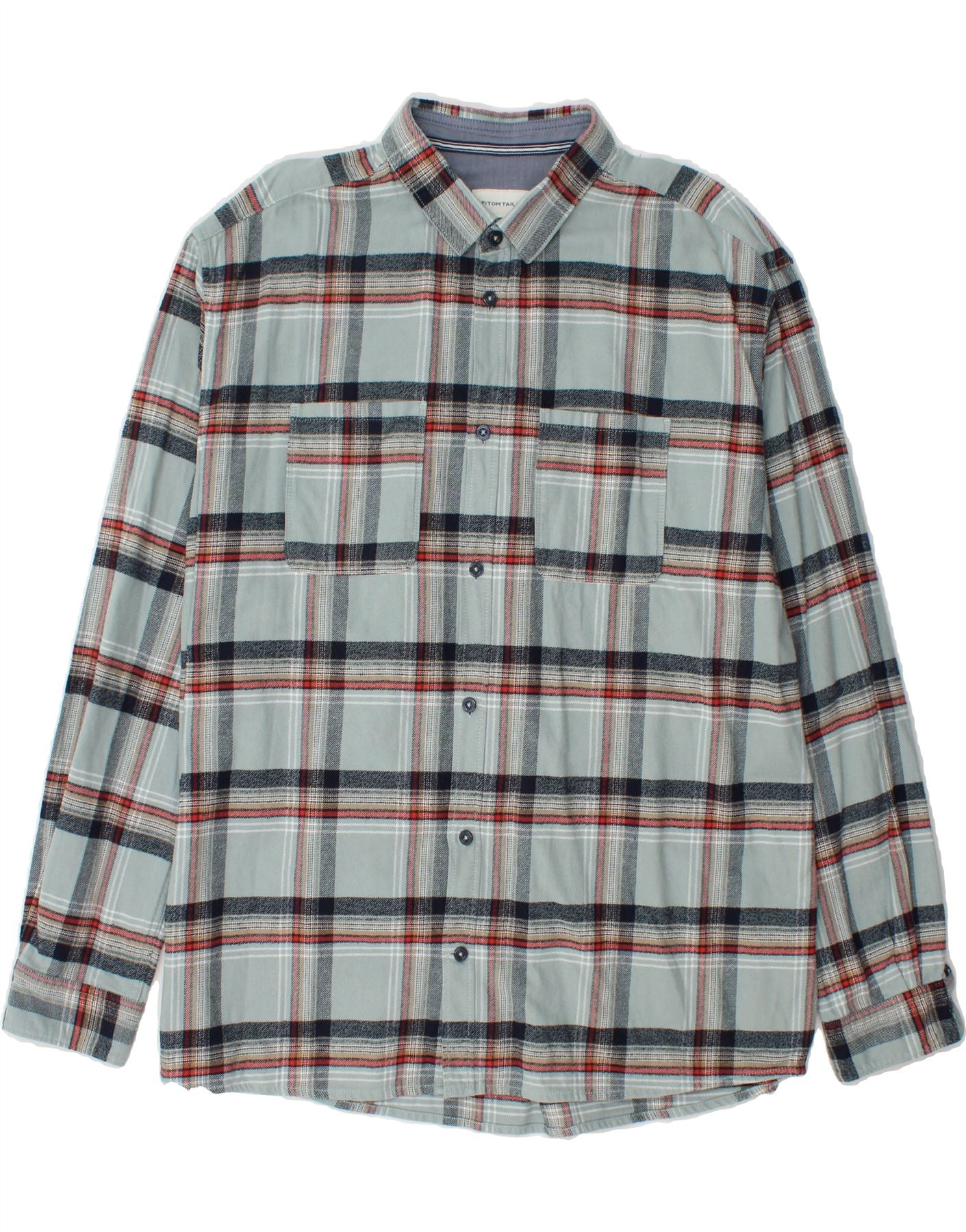 TOM TAILOR Mens Comfort Fit Flannel Shirt 3XL Blue Check Cotton