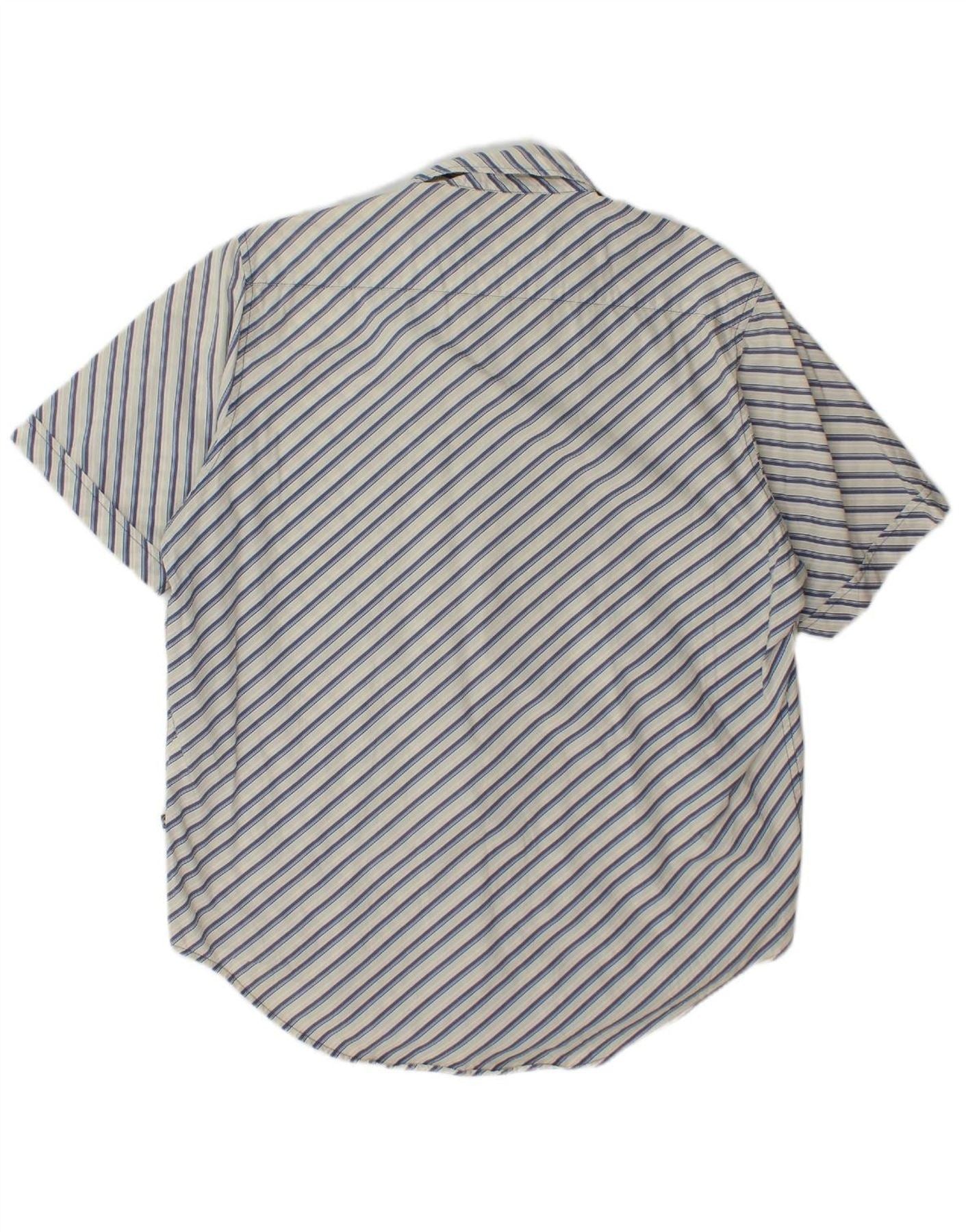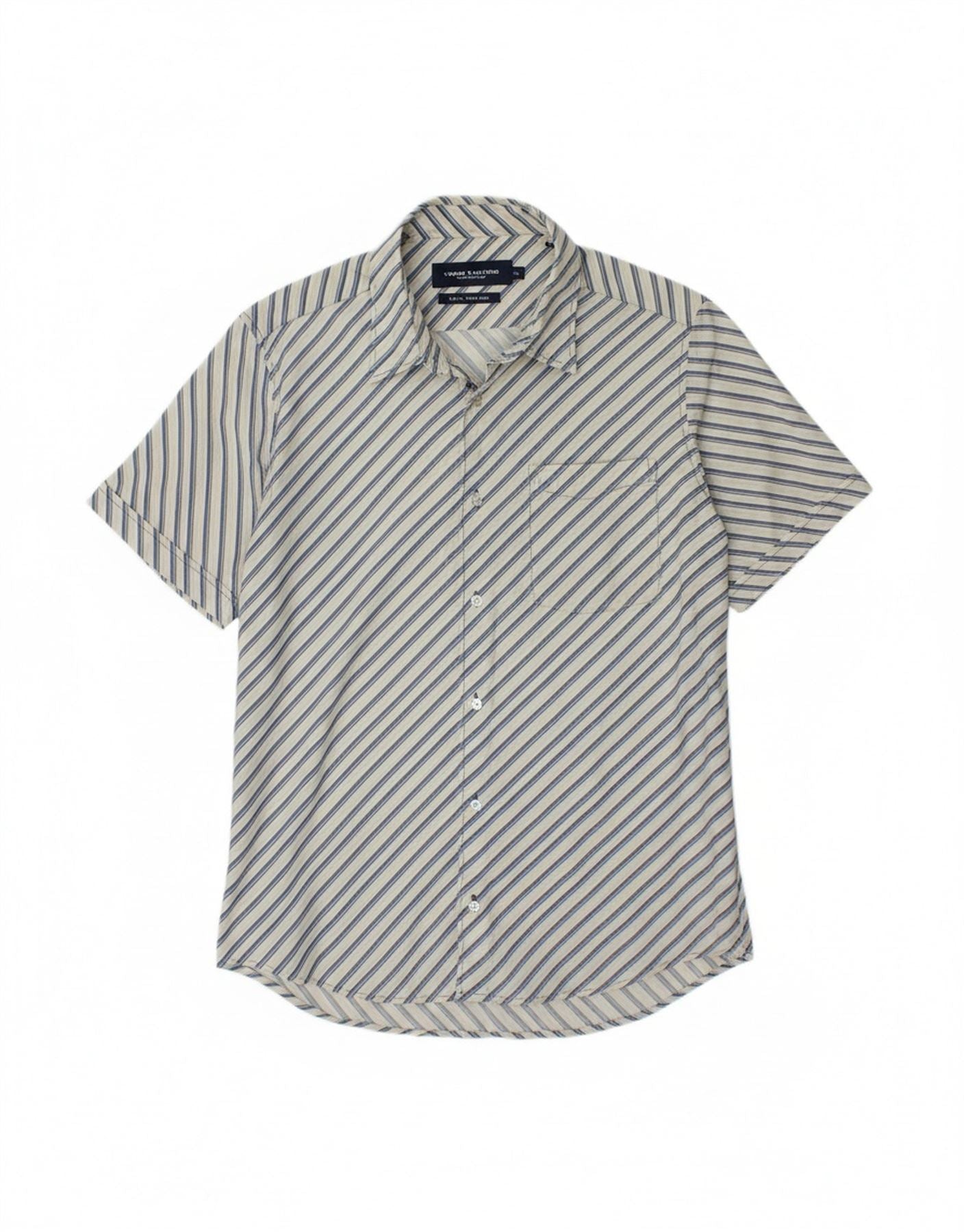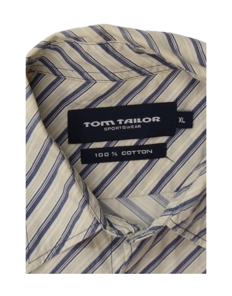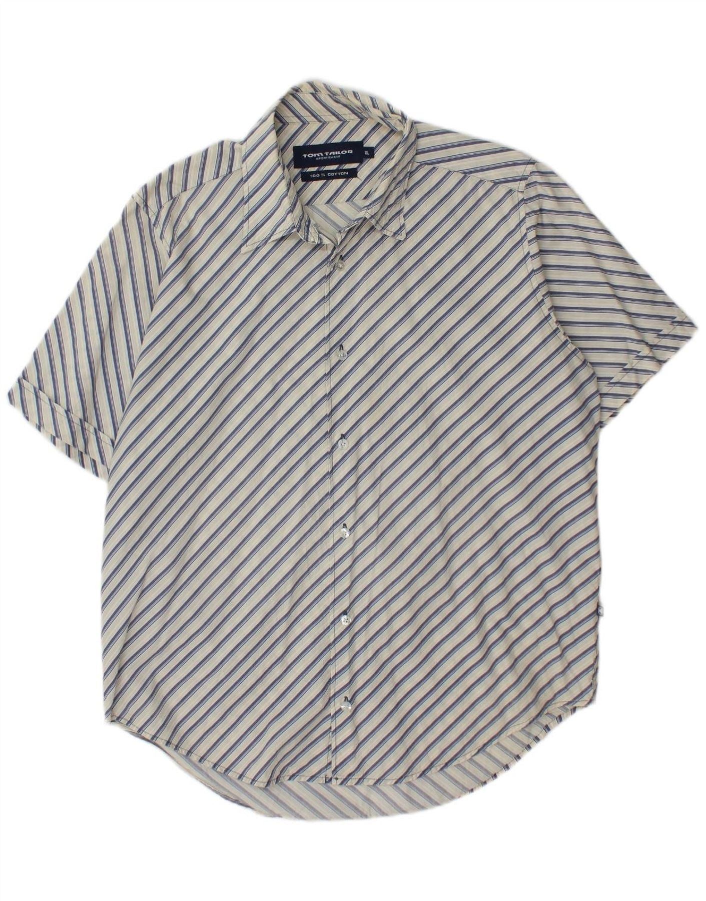 TOM TAILOR Mens Short Sleeve Shirt XL White Striped Cotton