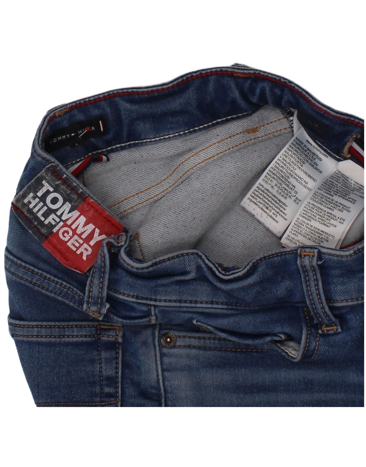 - AI Description: These Tommy Hilfiger boys skinny jeans are crafted from blue stretch denim. The cotton blend offers both comfort and flexibility. They feature a slim fit with skinny legs for a modern silhouette. A button closure ensures a secure fit. Classic pockets add practicality. A subtle logo accent provides signature branding. This classic style is perfect for everyday wear.