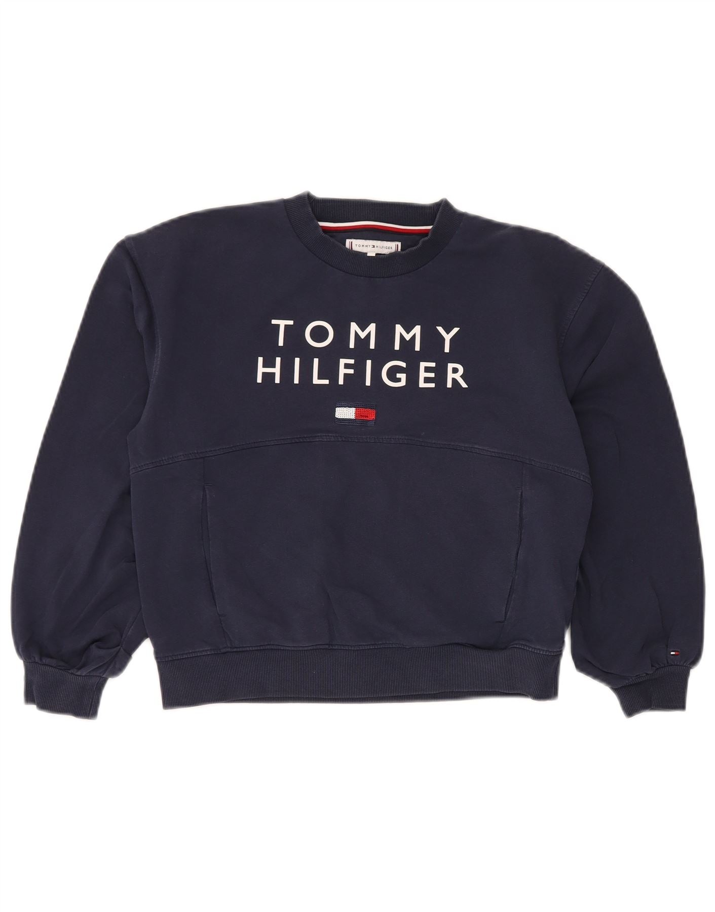 TOMMY HILFIGER Укороченный свитшот с рисунком для девочек, джемпер, 11–12 лет, темно-синий