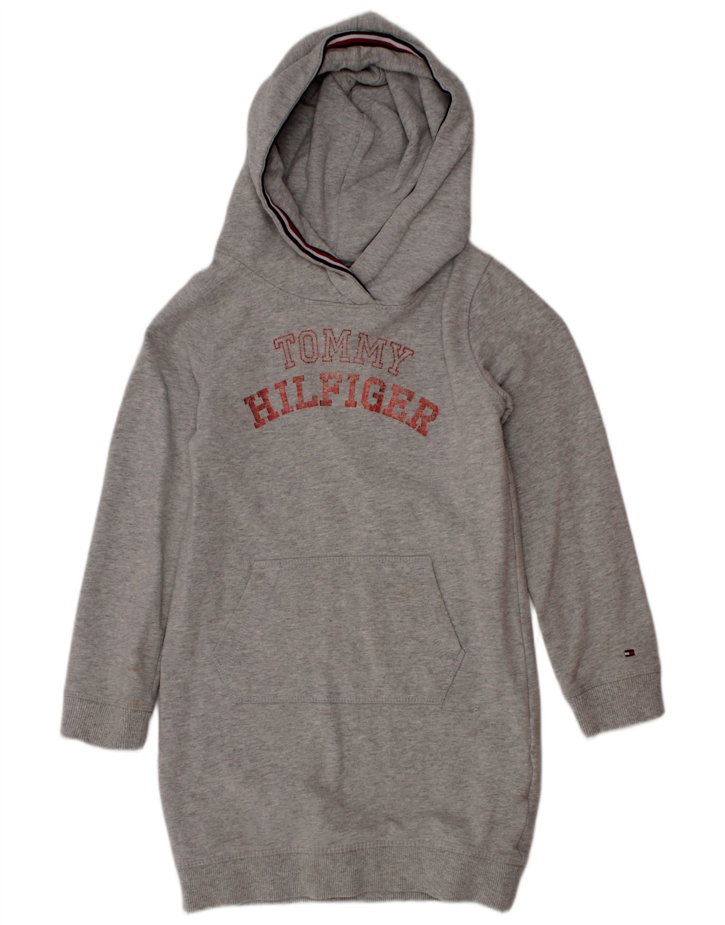 TOMMY HILFIGER Платье с капюшоном и рисунком для девочек 5–6 лет, серый хлопок с крапинками