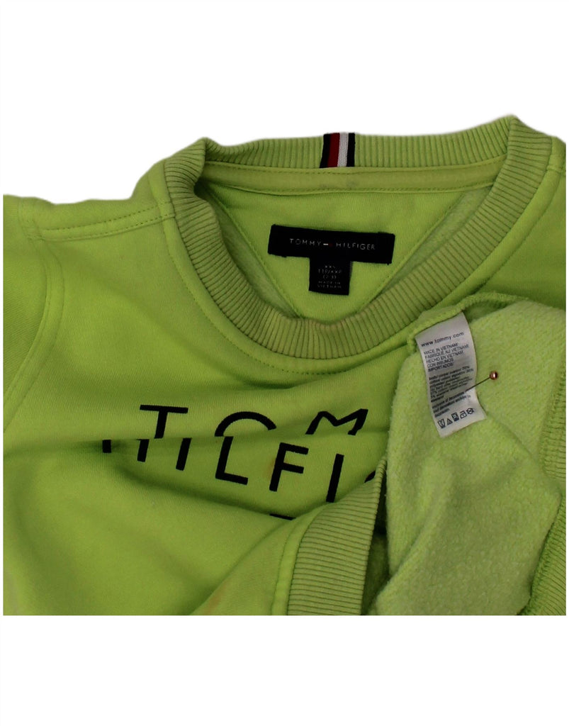 TOMMY HILFIGER Girls Graphic Sweatshirt Jumper 2-3 Years 2XS Green Cotton