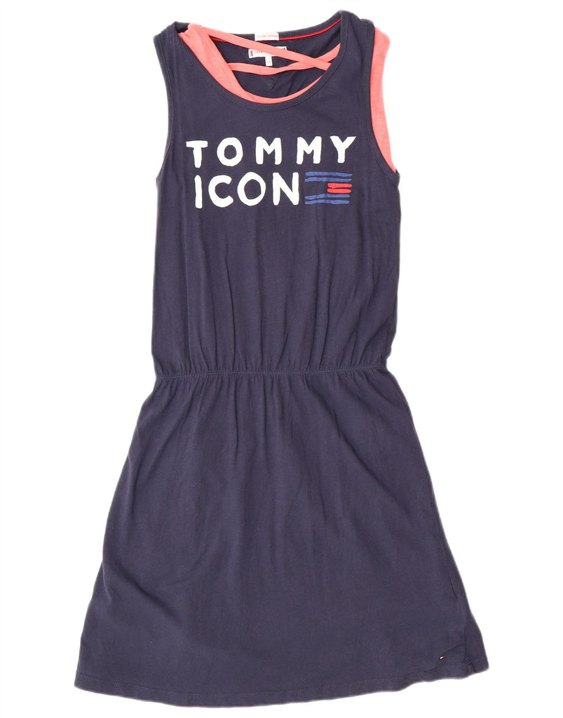 TOMMY HILFIGER Girls Graphic T-Shirt Dress 15-16 Years Navy Blue