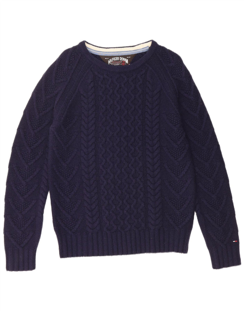 Мужской джемпер с вырезом лодочкой TOMMY HILFIGER, средний темно-синий из овечьей шерсти