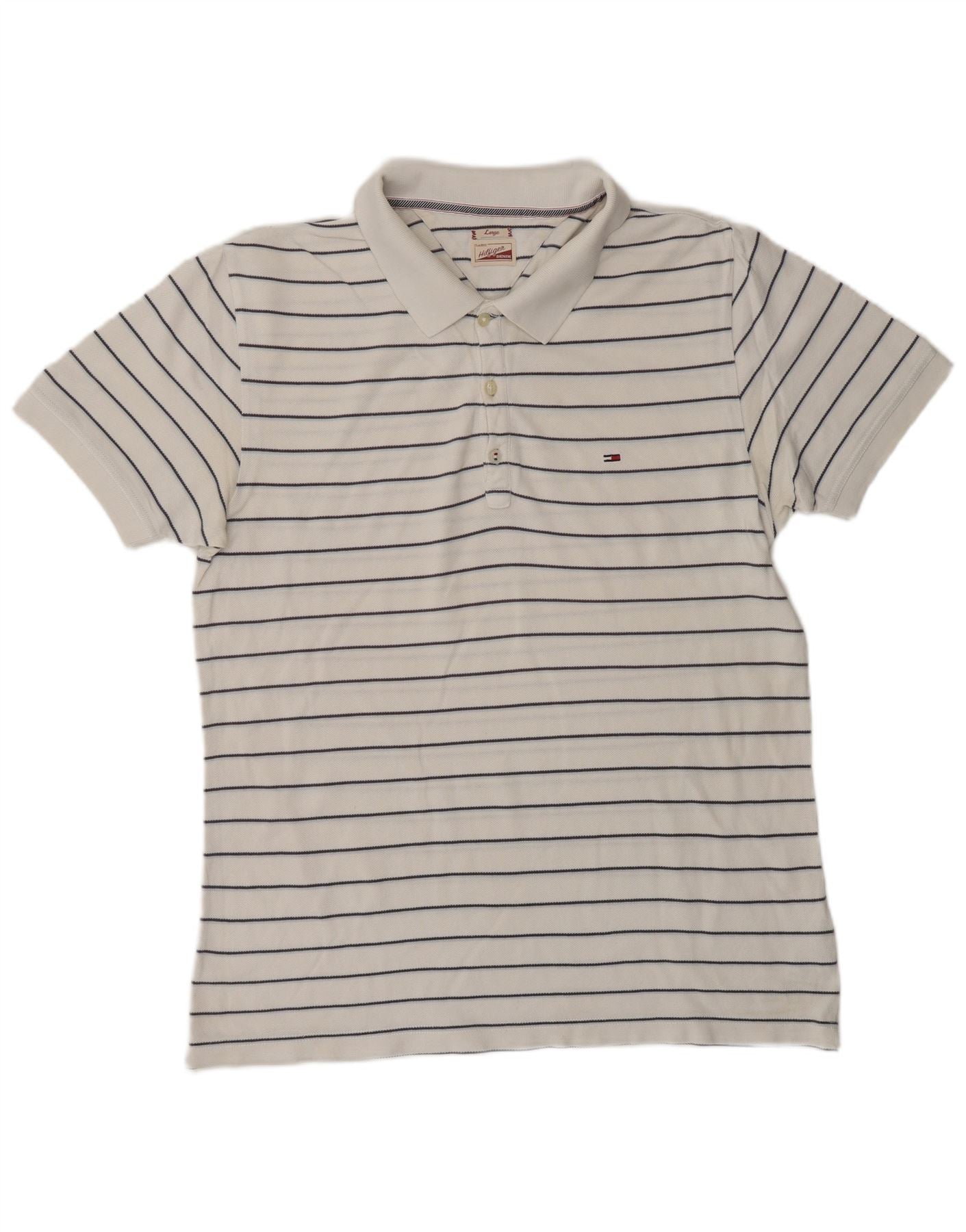TOMMY HILFIGER Мужская классическая рубашка-поло из хлопка в большую белую полоску