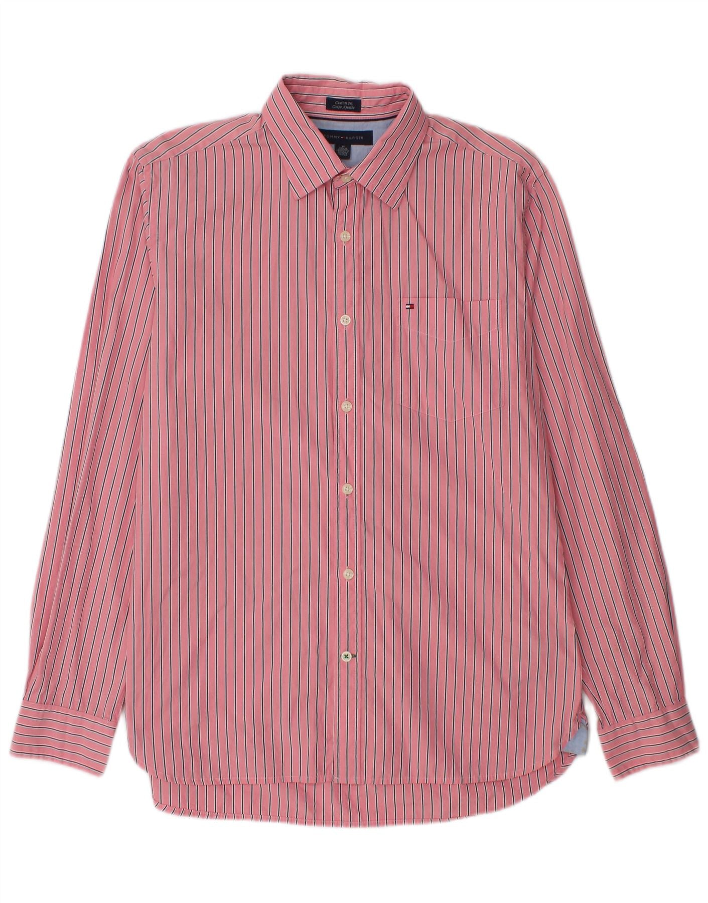 TOMMY HILFIGER Мужская рубашка-купе Ajustee Custom Fit средней длины в розовую полоску