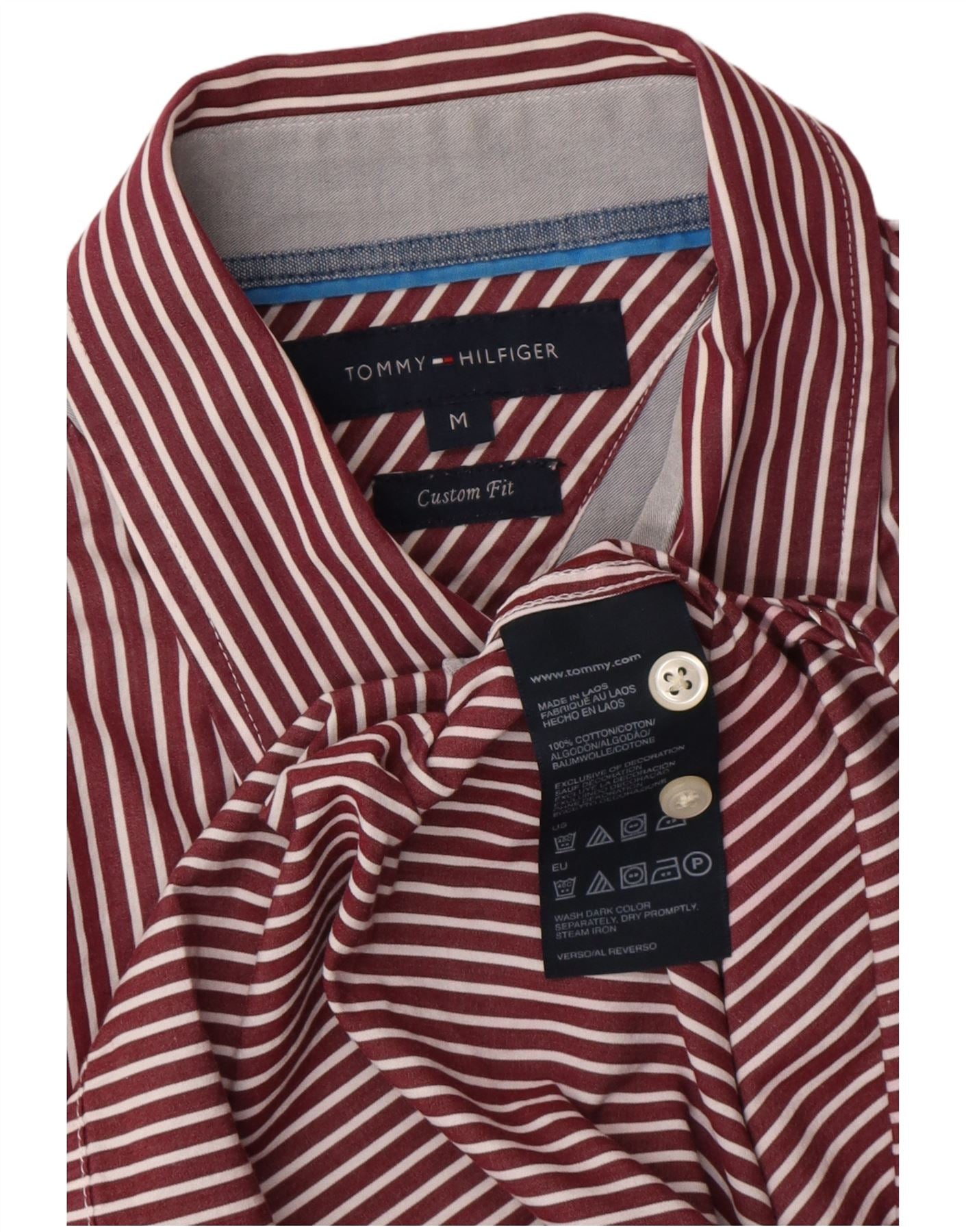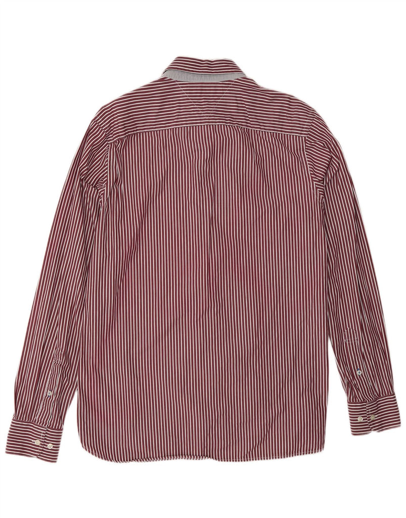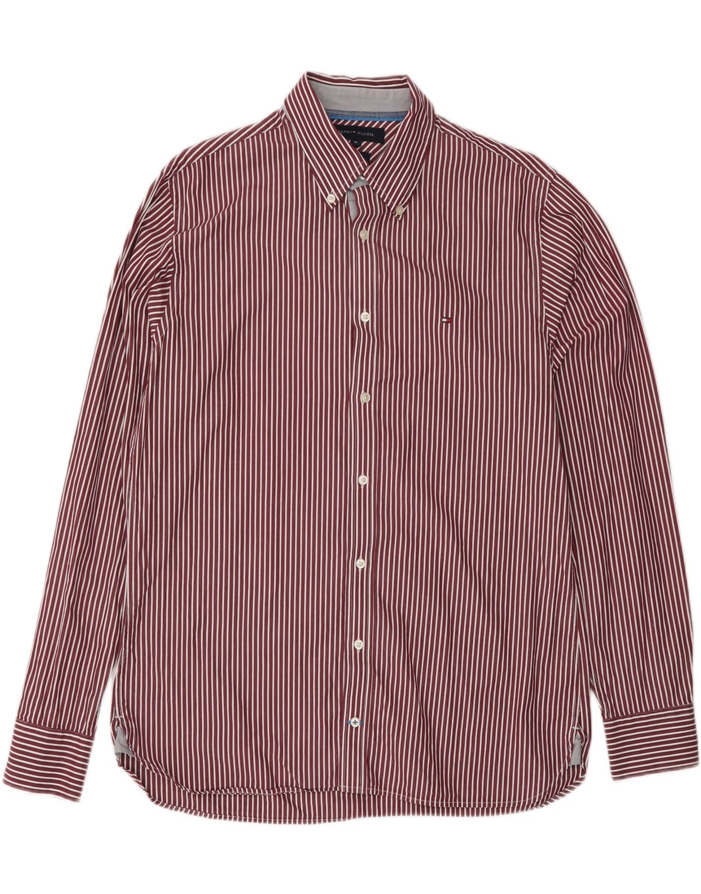 TOMMY HILFIGER Мужская рубашка на заказ среднего размера, бордовый, в тонкую полоску, хлопок