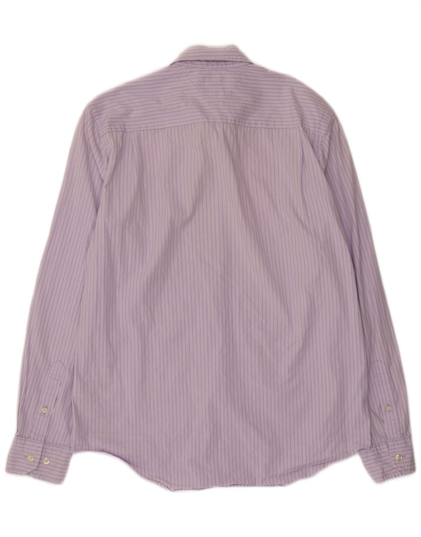 Tommy Hilfiger Мужская рубашка на заказ из хлопка в фиолетовую полоску среднего размера