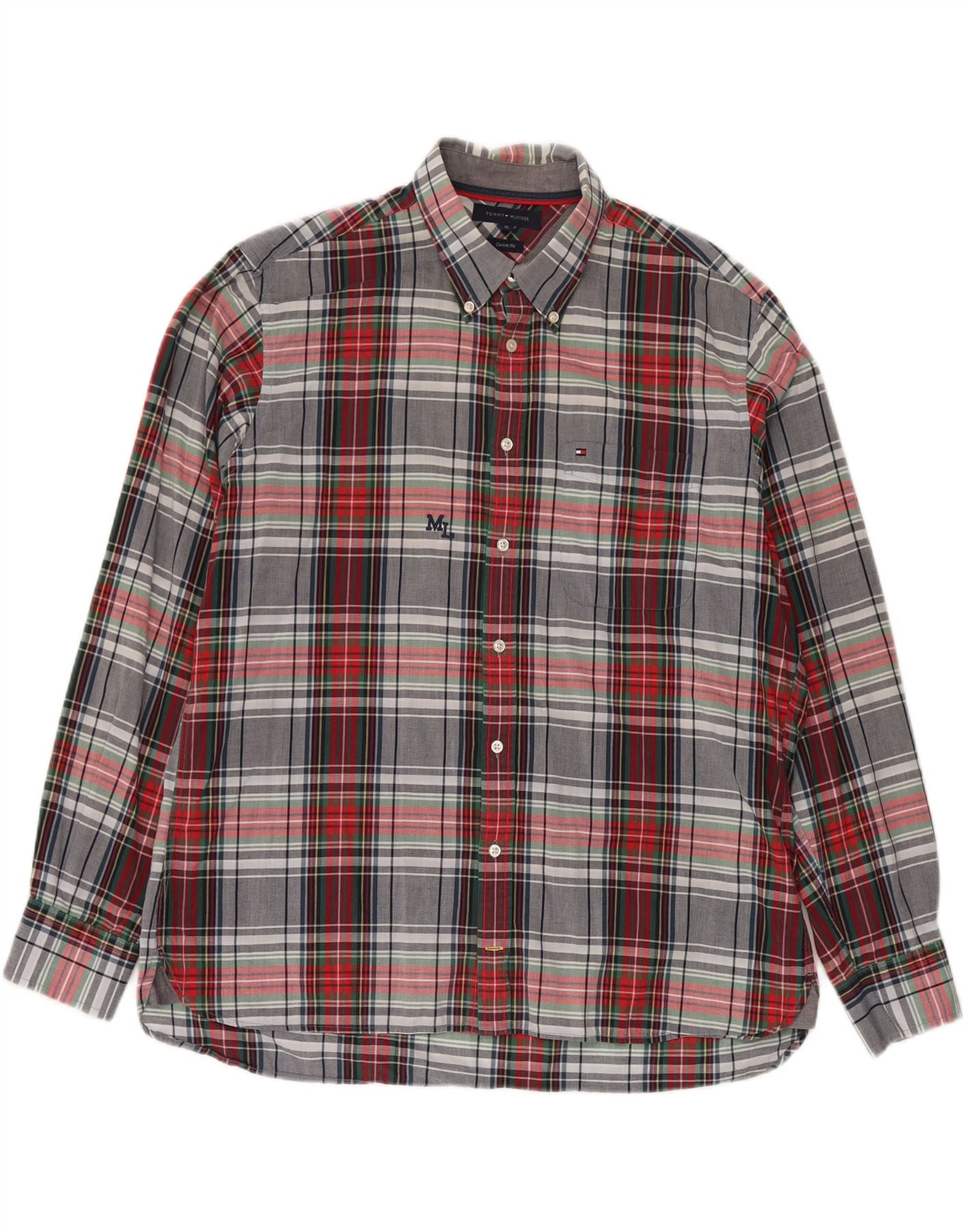 TOMMY HILFIGER Мужская рубашка индивидуального кроя XL в разноцветную клетку из хлопка