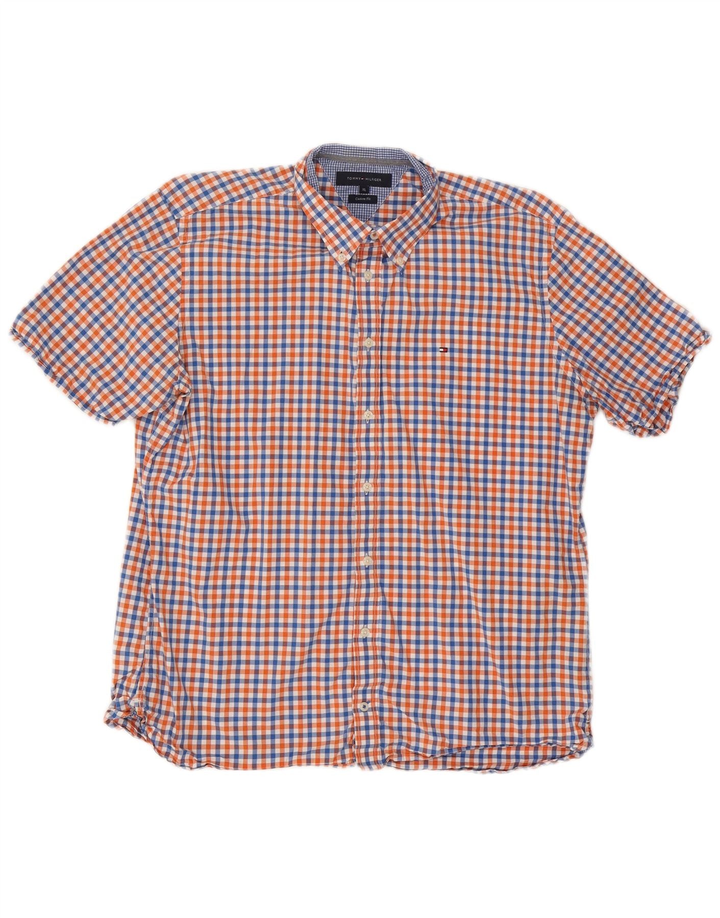 TOMMY HILFIGER Мужская рубашка с коротким рукавом на заказ, размер XL, разноцветная клетчатая клетка