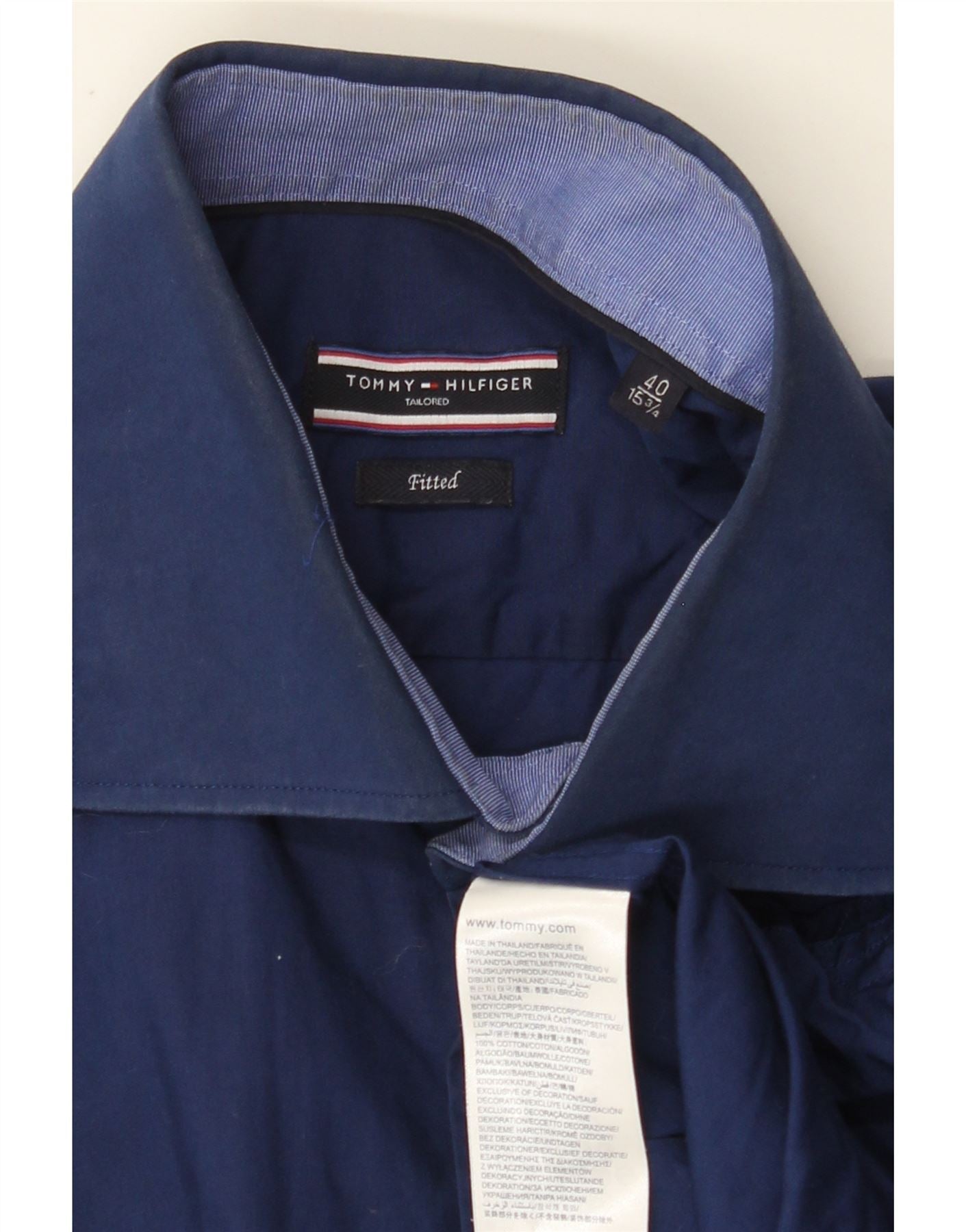 TOMMY HILFIGER Мужская приталенная рубашка, размер 40, 15, 3/4, средний, темно-синий, хлопок
