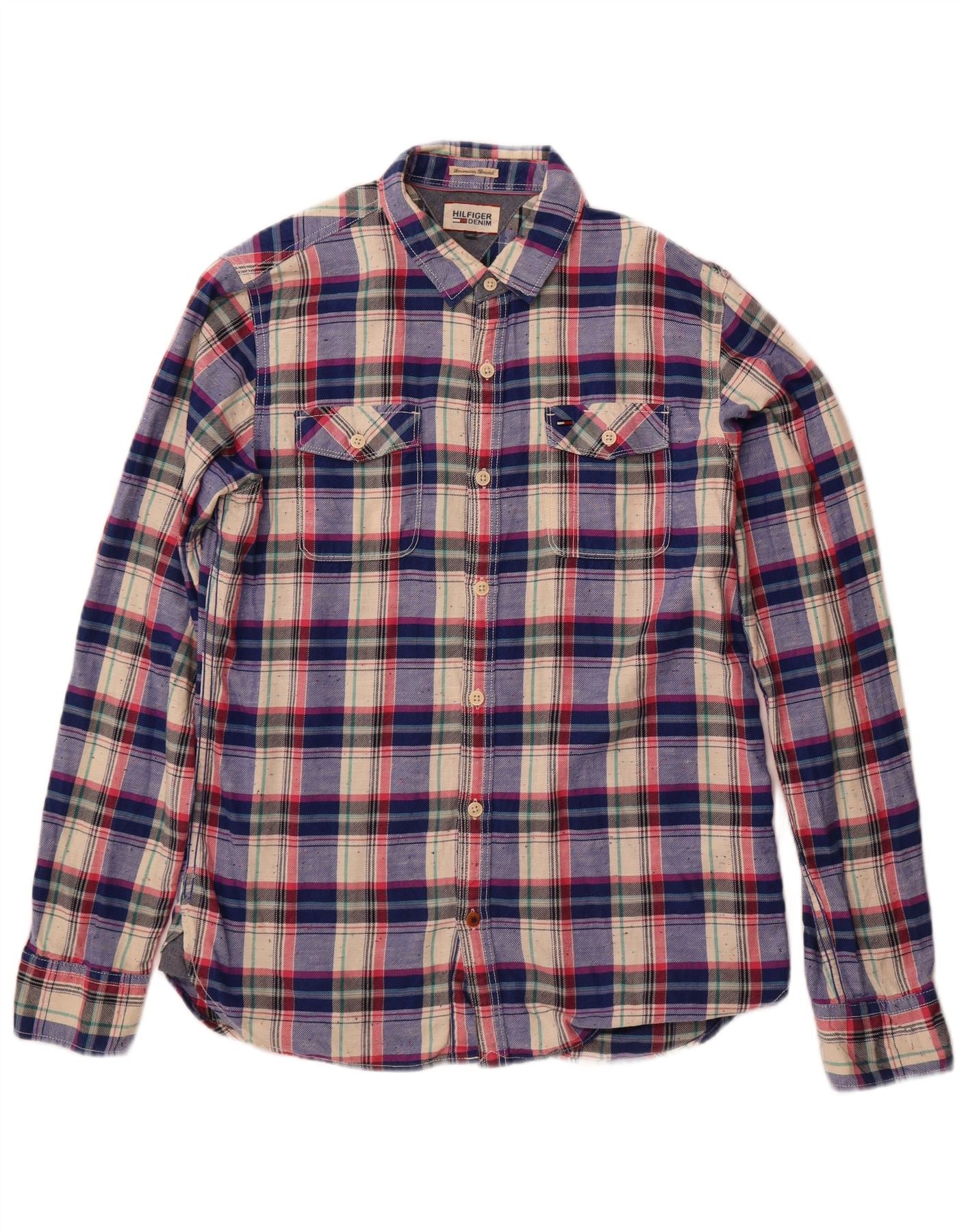 TOMMY HILFIGER Мужская фланелевая рубашка в клетку синего цвета, хлопок