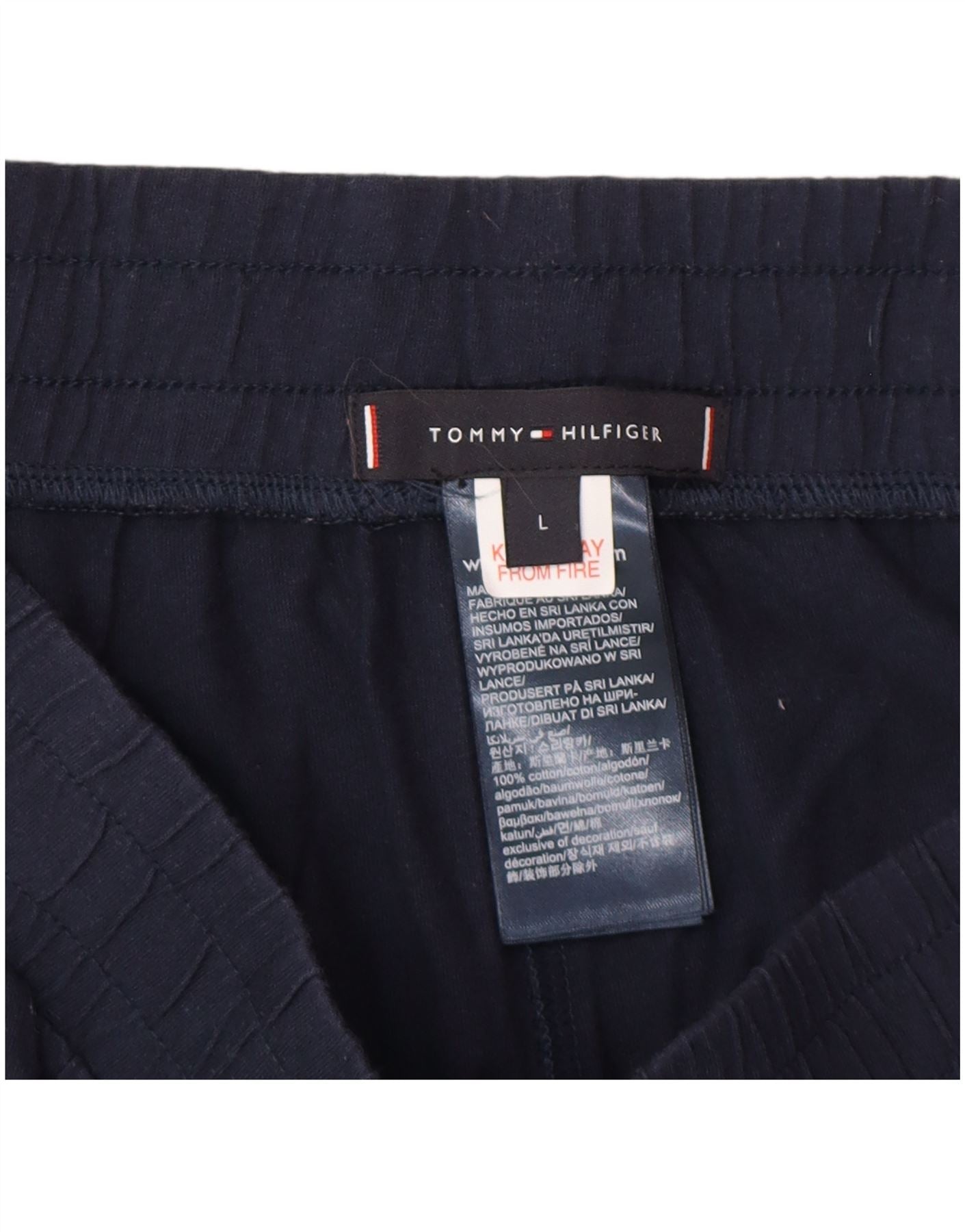 - Описание ИИ: Мужские повседневные шорты Tommy Hilfiger из мягкого хлопкового джерси темно-синего цвета. Они имеют удобную эластичную талию и стандартную посадку. Боковые карманы добавляют практичности. На одной штанине вертикально напечатан жирный графический логотип. Конструкция без застежки обеспечивает удобство ношения в классическом непринужденном стиле.
