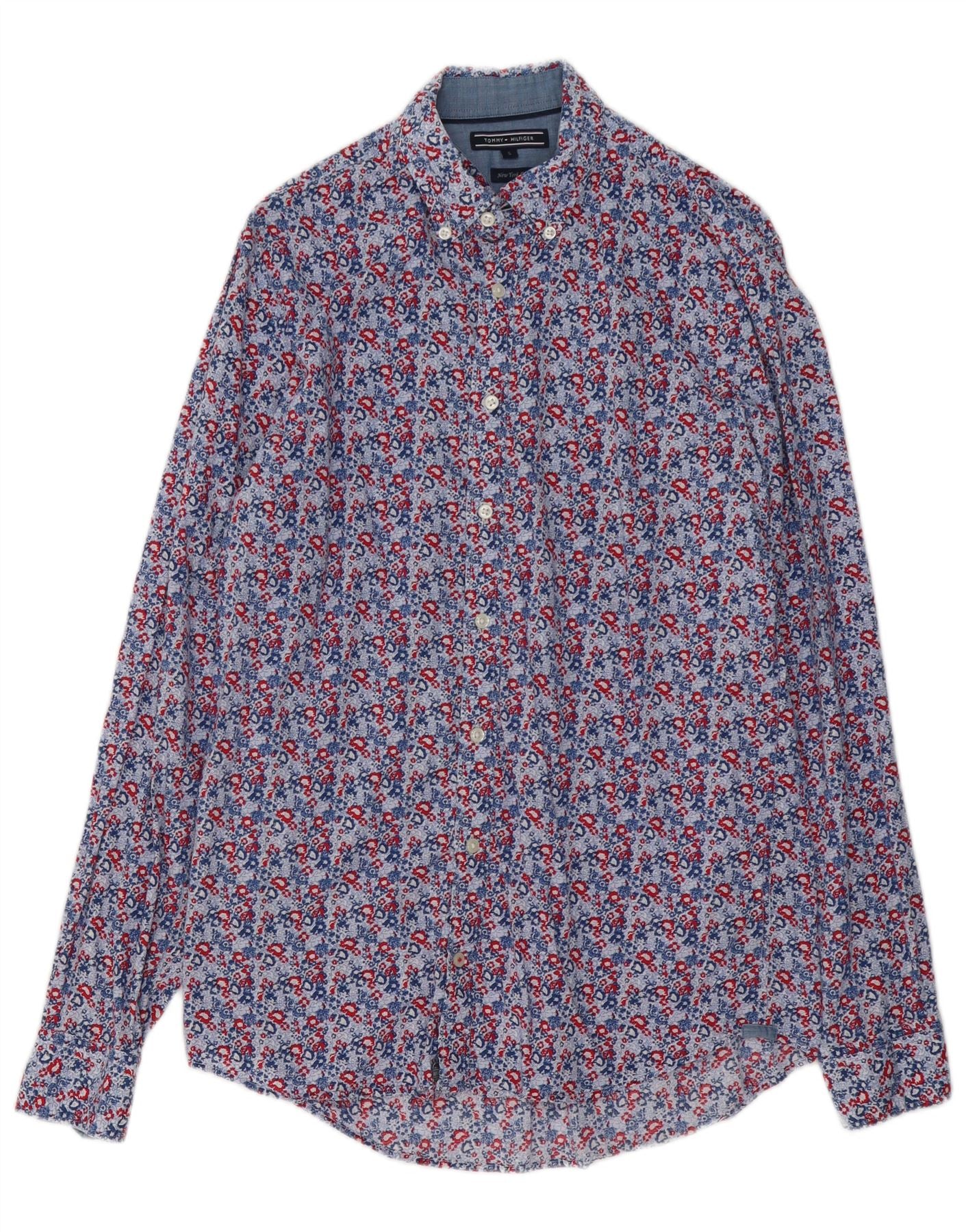 TOMMY HILFIGER Мужская рубашка New York Fit, маленькая синяя хлопковая рубашка с цветочным принтом