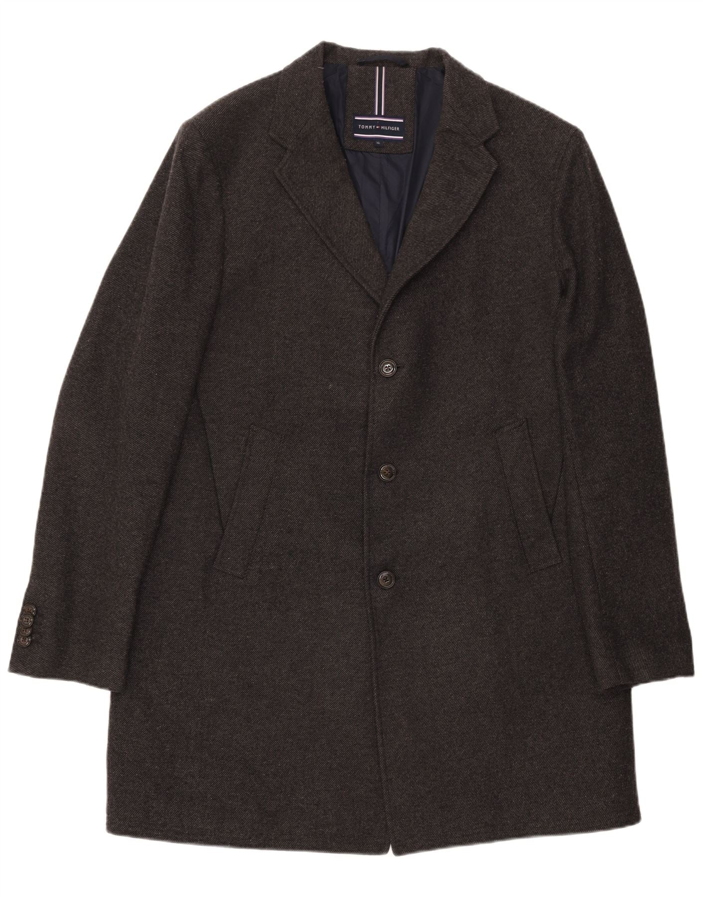 TOMMY HILFIGER Mens Overcoat UK 42 XL Grey Wool Classic