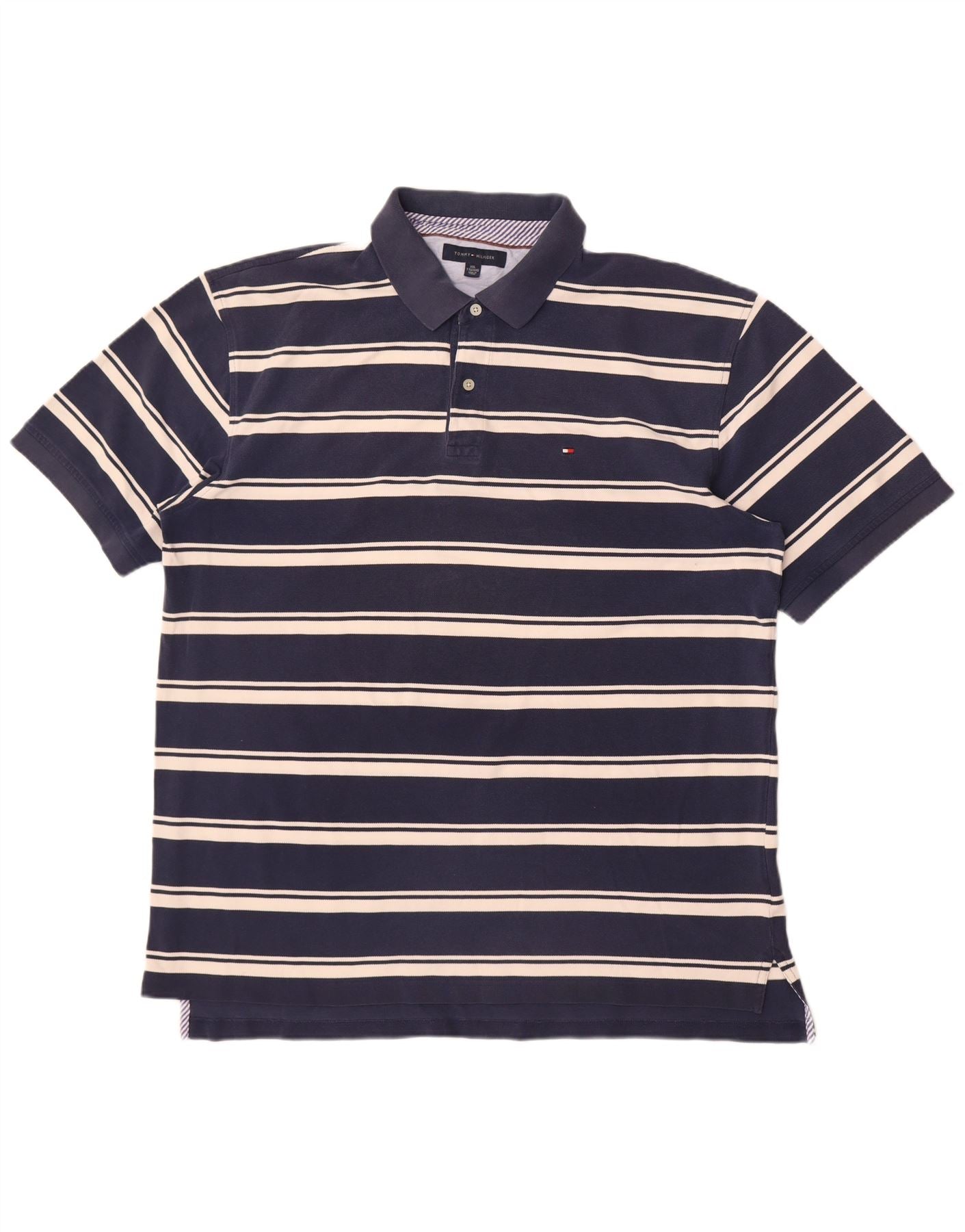 Мужская рубашка-поло Tommy Hilfiger 2XL, хлопковая темно-синяя полоска