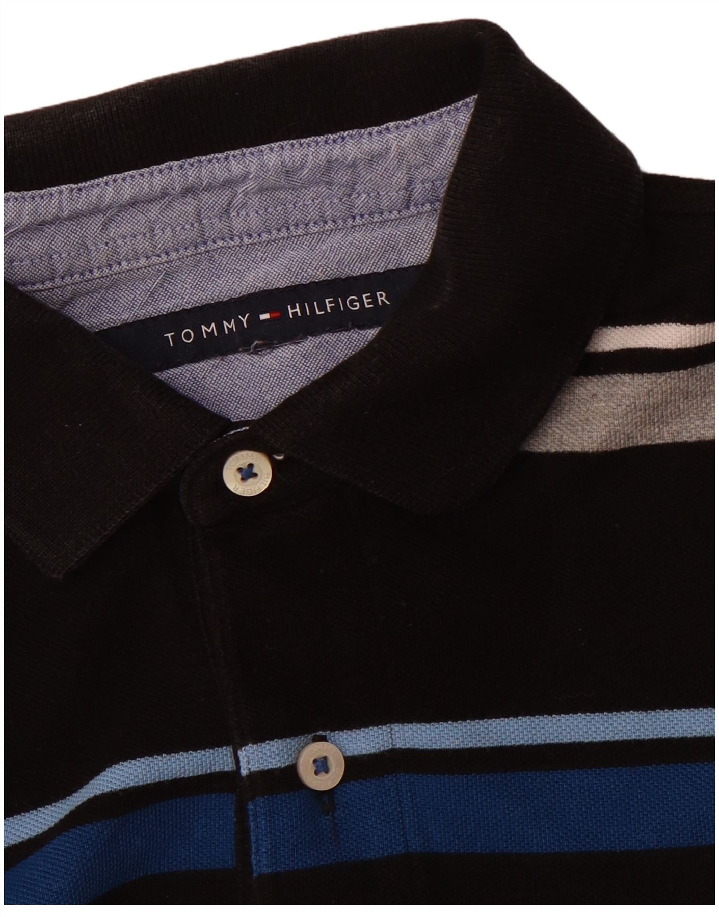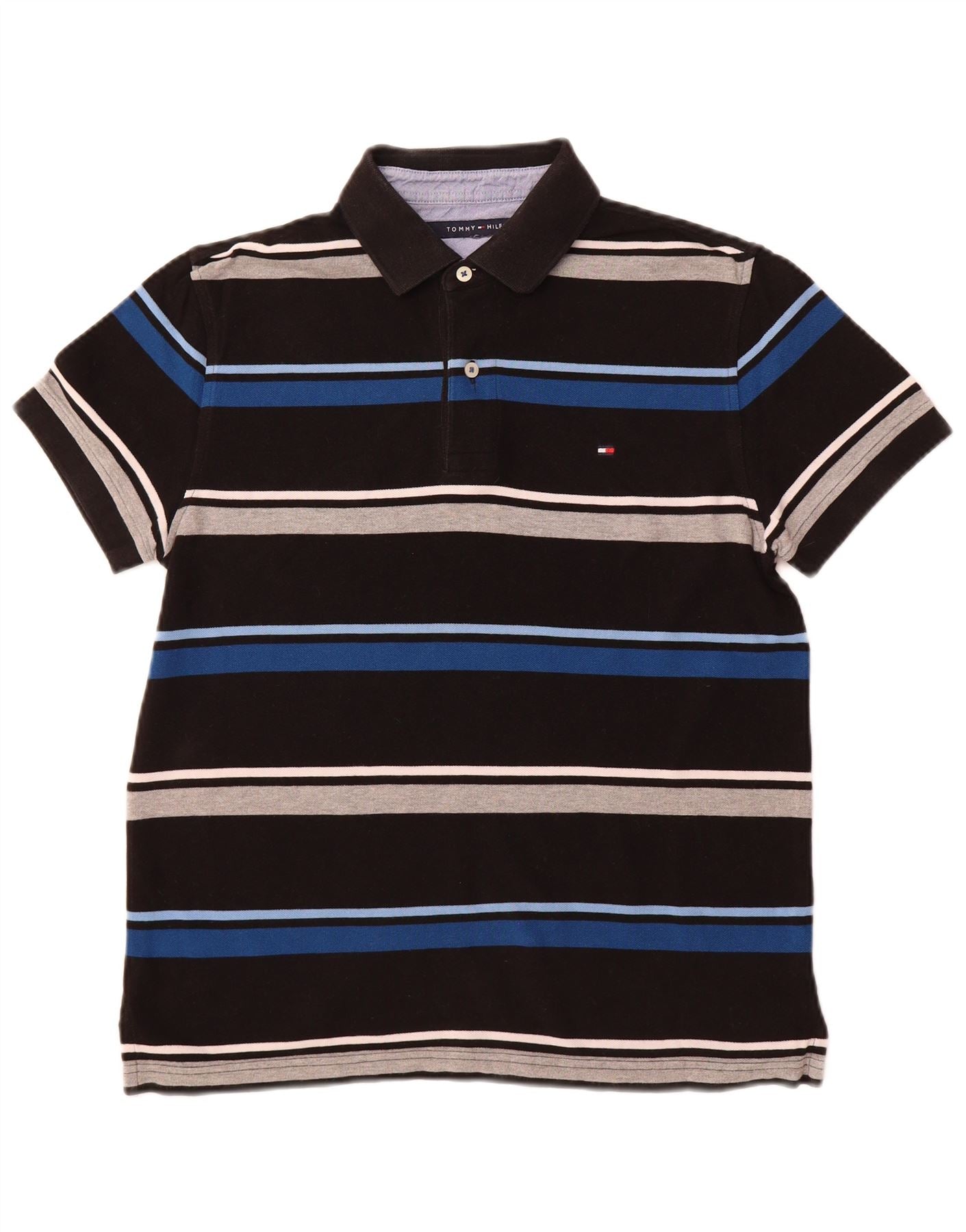 Мужская рубашка-поло TOMMY HILFIGER, маленькая, черная в полоску