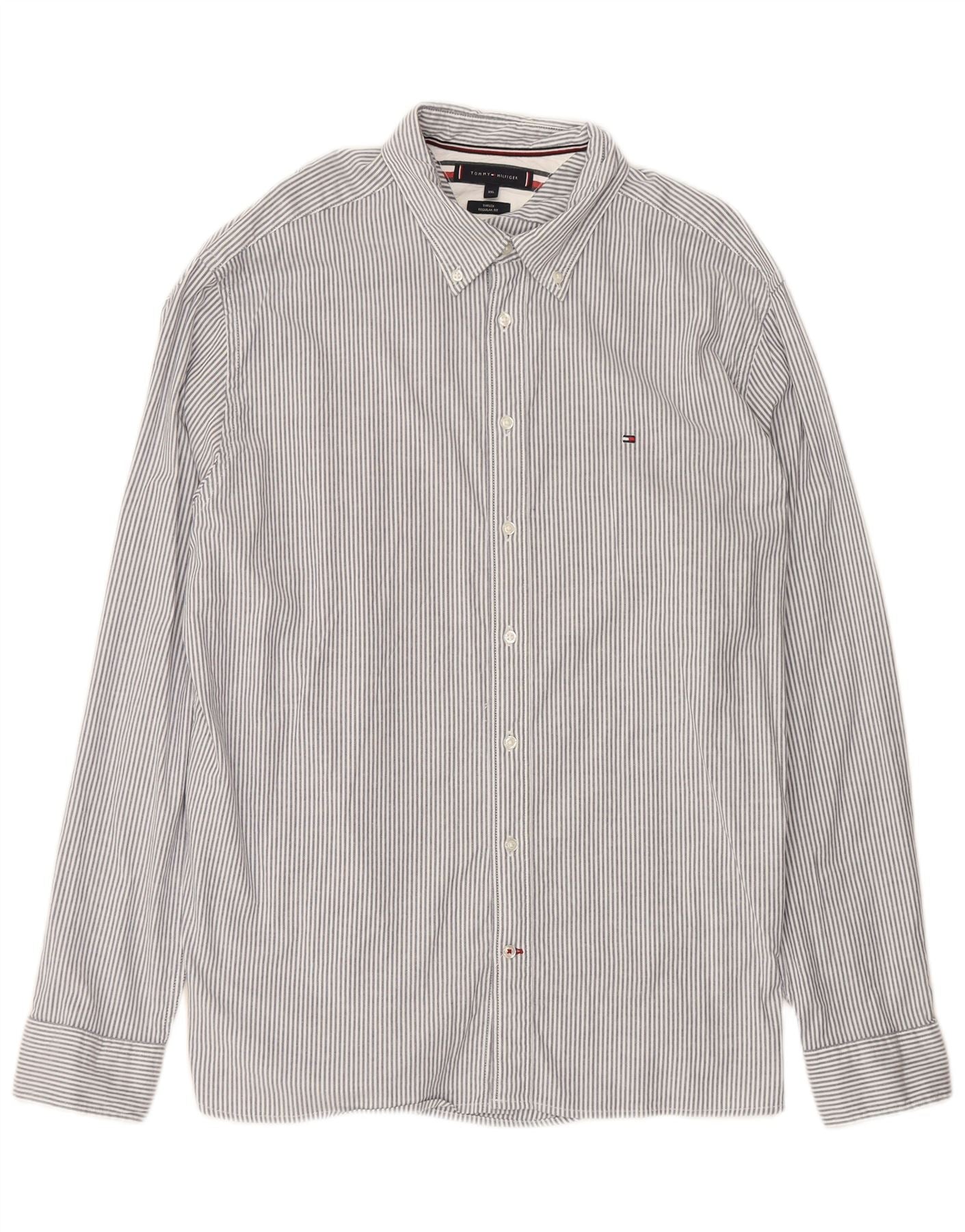 TOMMY HILFIGER Мужская рубашка стандартного кроя 2XL серая в тонкую полоску, хлопок