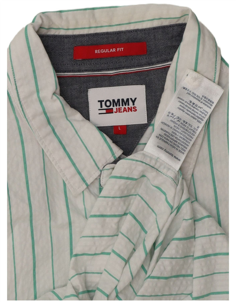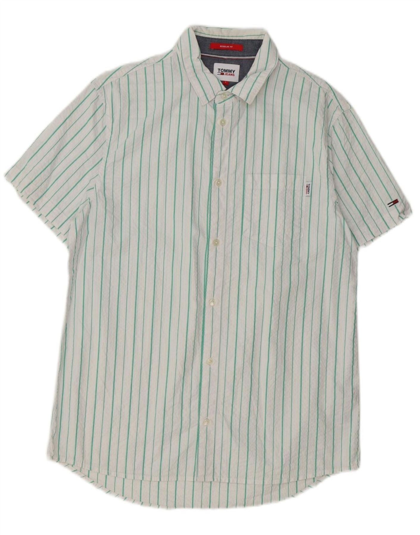 TOMMY HILFIGER Мужская рубашка стандартного кроя с коротким рукавом, большая белая полоска