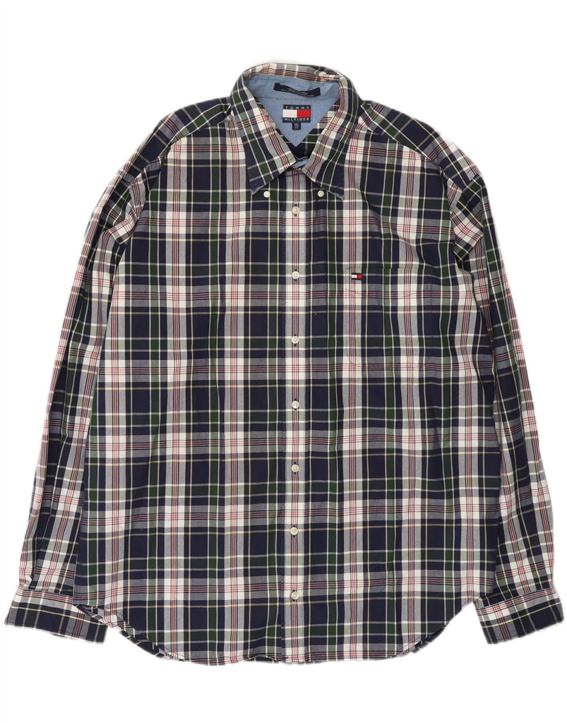 TOMMY HILFIGER Мужская рубашка 2XL Темно-синяя клетка из хлопка