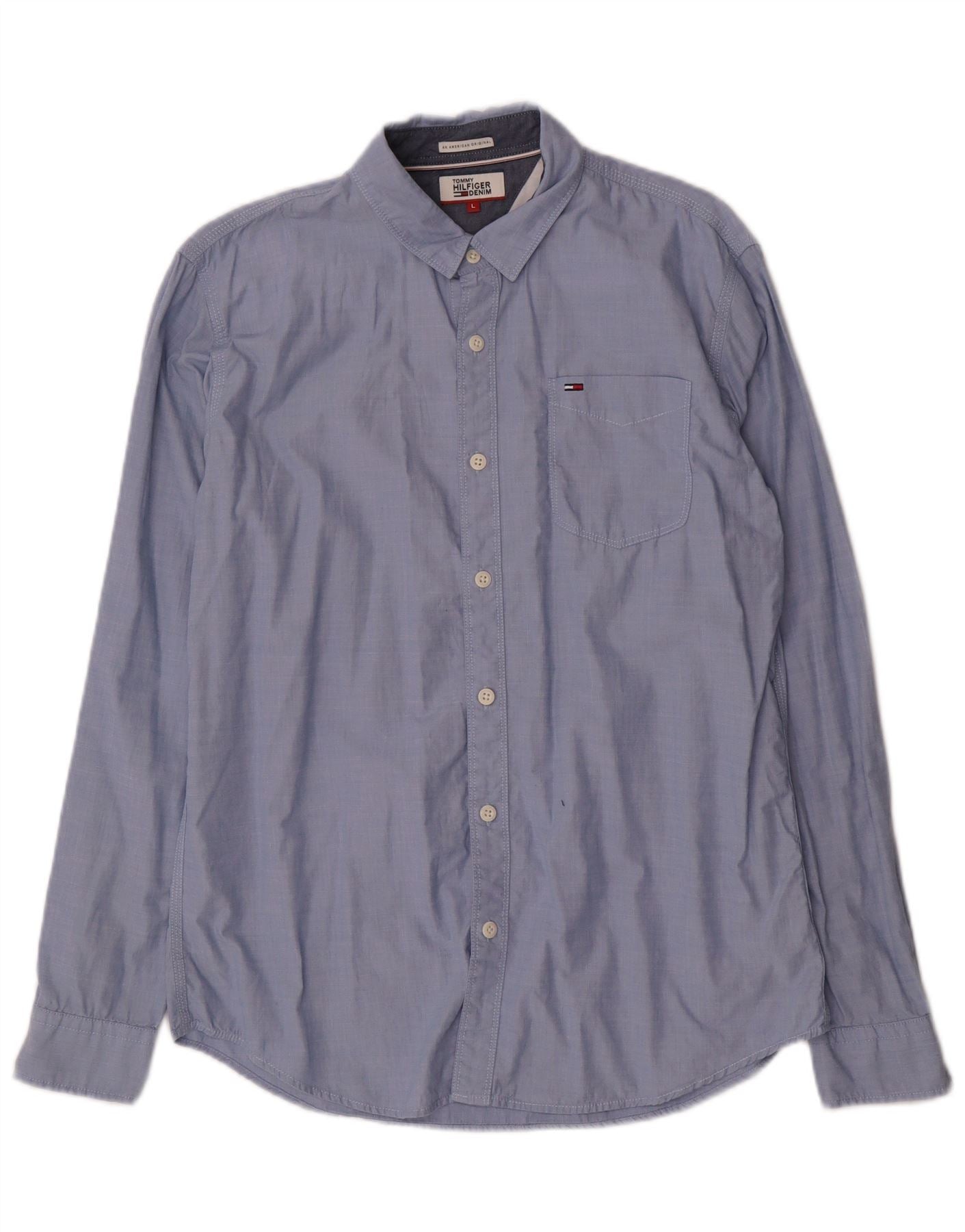 - Описание ИИ: Мужская джинсовая рубашка Tommy Hilfiger изготовлена из 100-процентного хлопкового денима классического синего оттенка. Имеет воротник с воротником и застежку на пуговицы спереди. Длинные рукава заканчиваются манжетами на пуговицах. Один нагрудный карман добавляет практичности. Регулярная посадка обеспечивает комфортное ношение. Фирменный логотип Tommy Hilfiger тонко расположен, подчеркивая классический стиль.