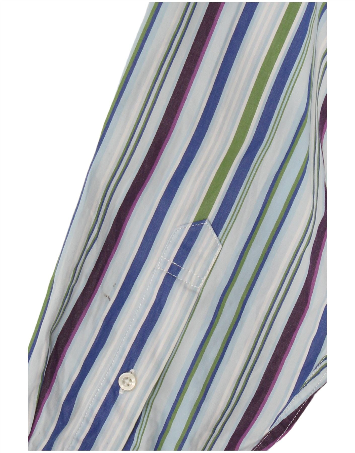 - Описание ИИ: Эта мужская рубашка Tommy Hilfiger изготовлена из 100-процентного хлопка, обеспечивающего свежесть и комфорт. Он имеет яркий полосатый узор в оттенках синего, зеленого, фиолетового и белого. Вырез с воротником и застежка на пуговицы спереди создают классический образ. Длинные рукава заканчиваются аккуратными манжетами на пуговицах. Регулярная посадка обеспечивает удобство ношения и неподвластный времени силуэт.