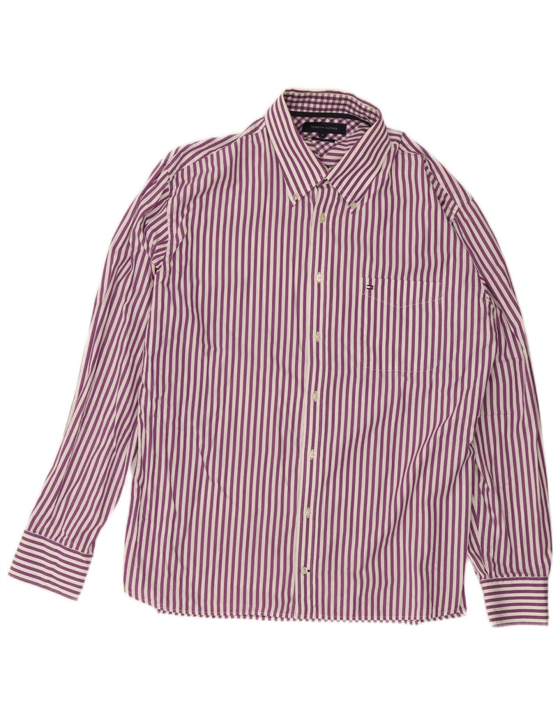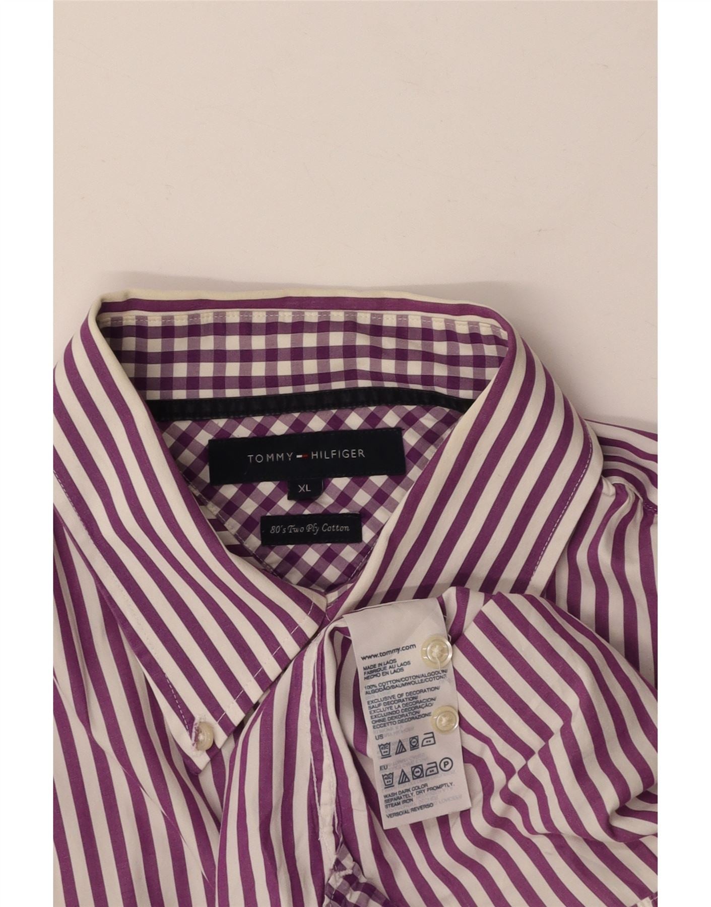 TOMMY HILFIGER Мужская рубашка XL из хлопка в тонкую полоску фиолетового цвета