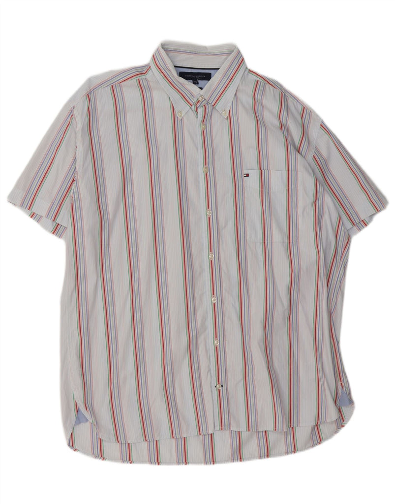 TOMMY HILFIGER Мужская рубашка с коротким рукавом 2XL, хлопок в разноцветную полоску