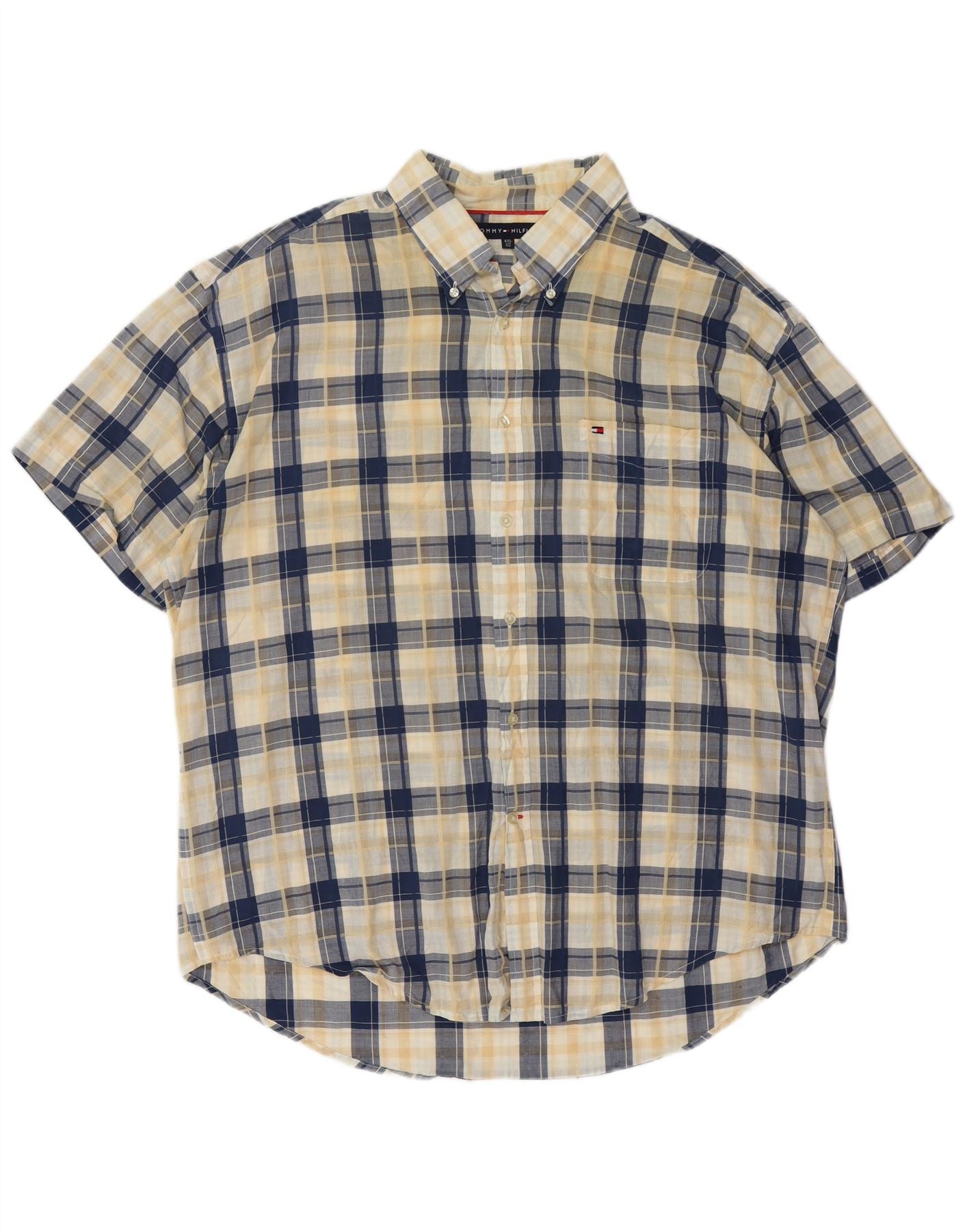 TOMMY HILFIGER Мужская рубашка с коротким рукавом 2XL Темно-синяя клетка, хлопок