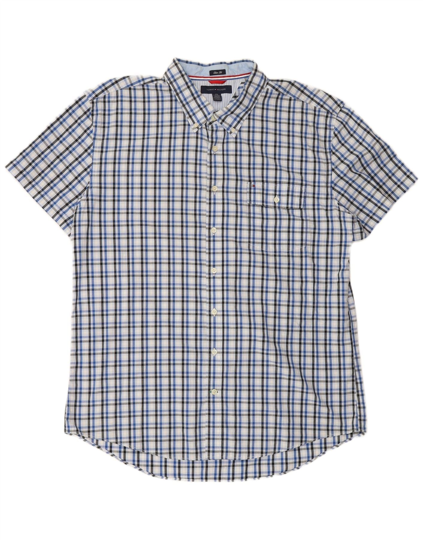 TOMMY HILFIGER Мужская рубашка приталенного кроя с коротким рукавом 2XL, синяя клетка, хлопок
