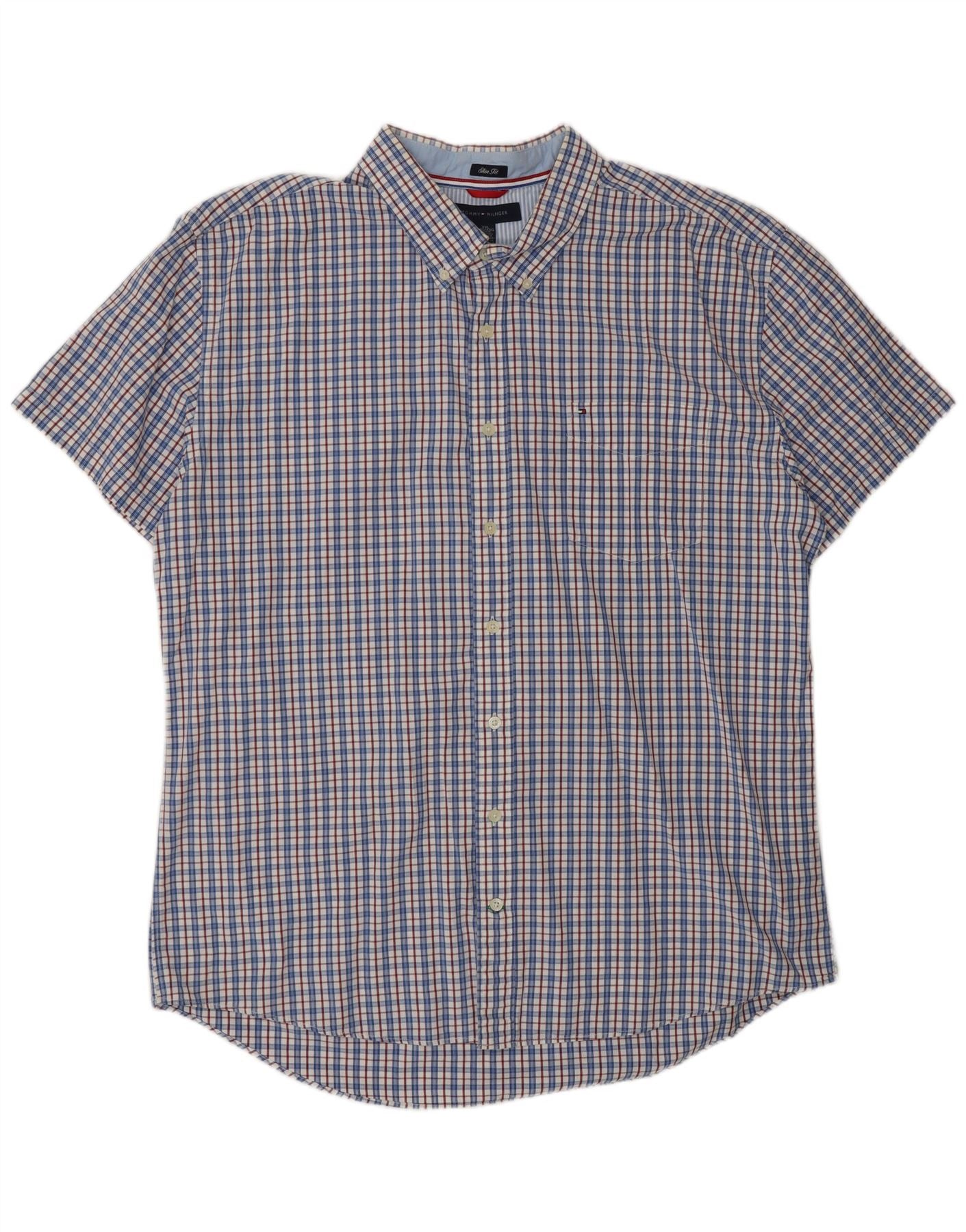 TOMMY HILFIGER Мужская рубашка приталенного кроя с коротким рукавом 2XL, синяя клетка, хлопок