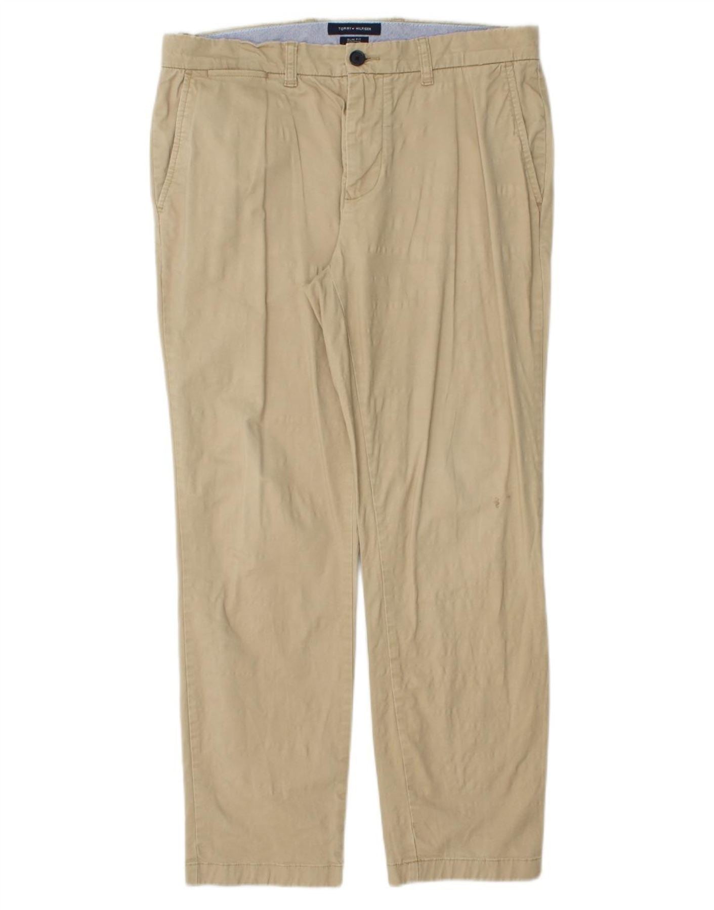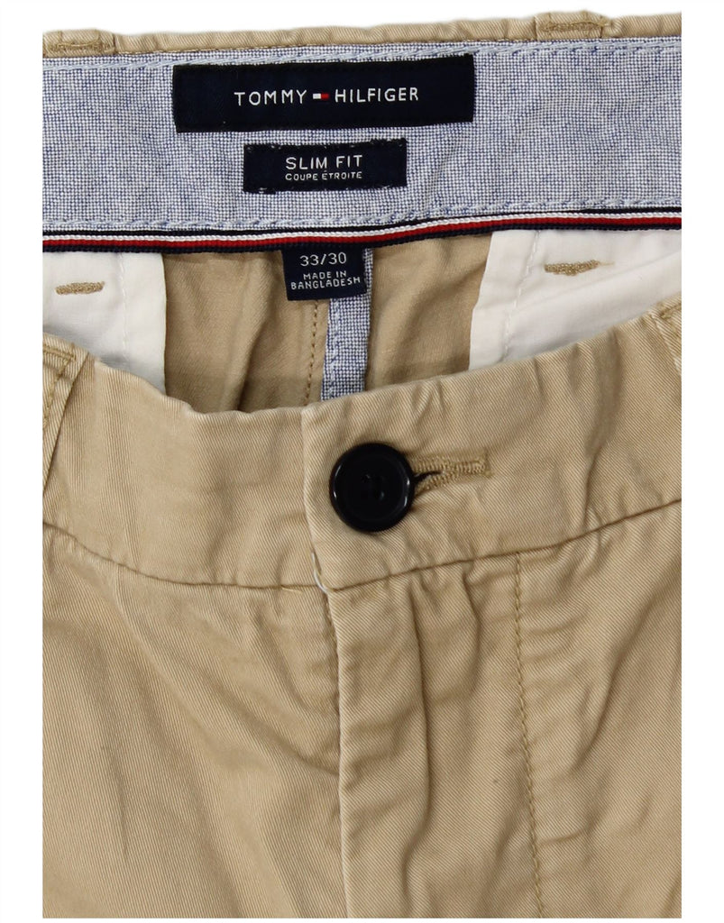 TOMMY HILFIGER Мужские брюки-чиносы приталенного кроя W33 L28 Бежевый хлопок