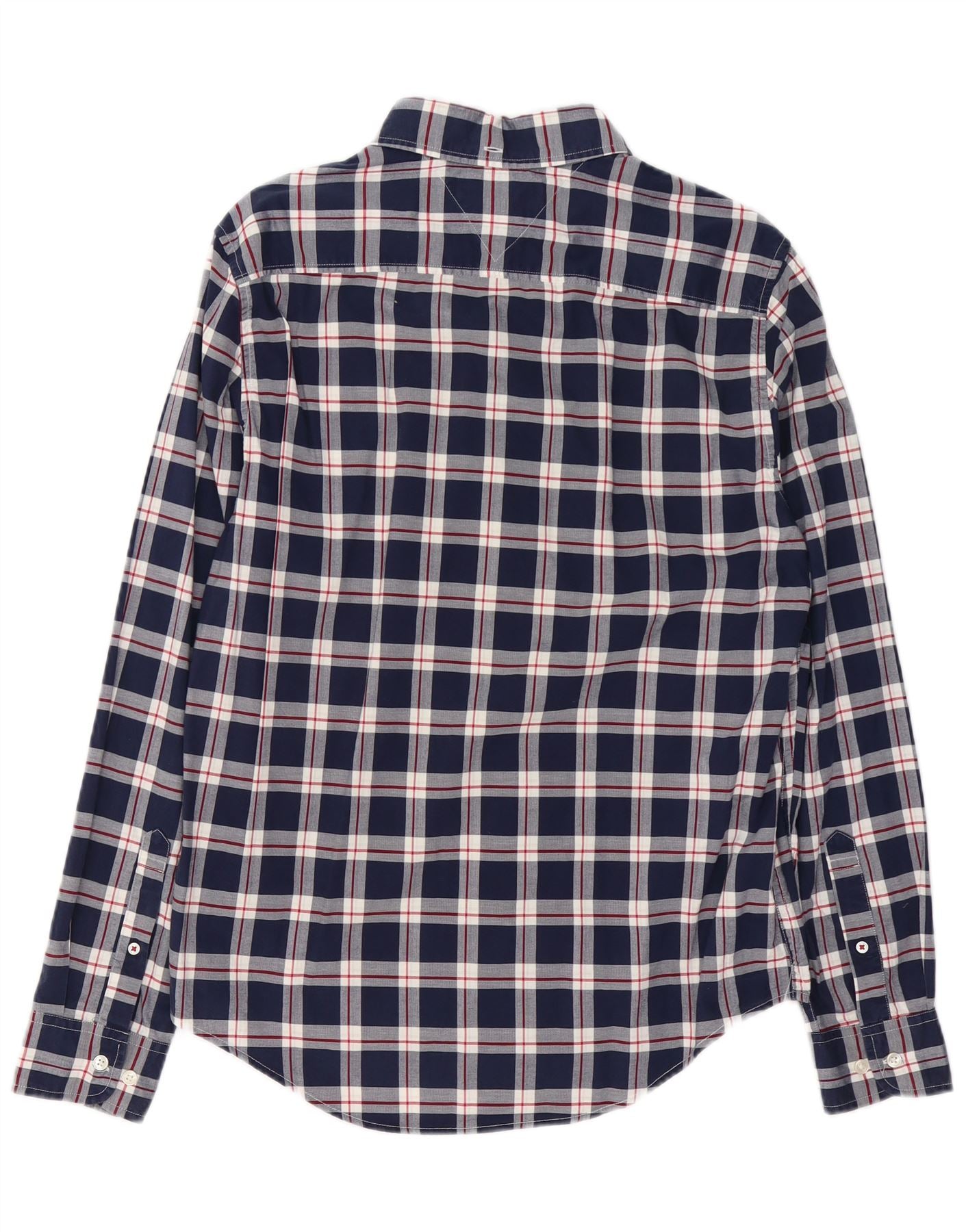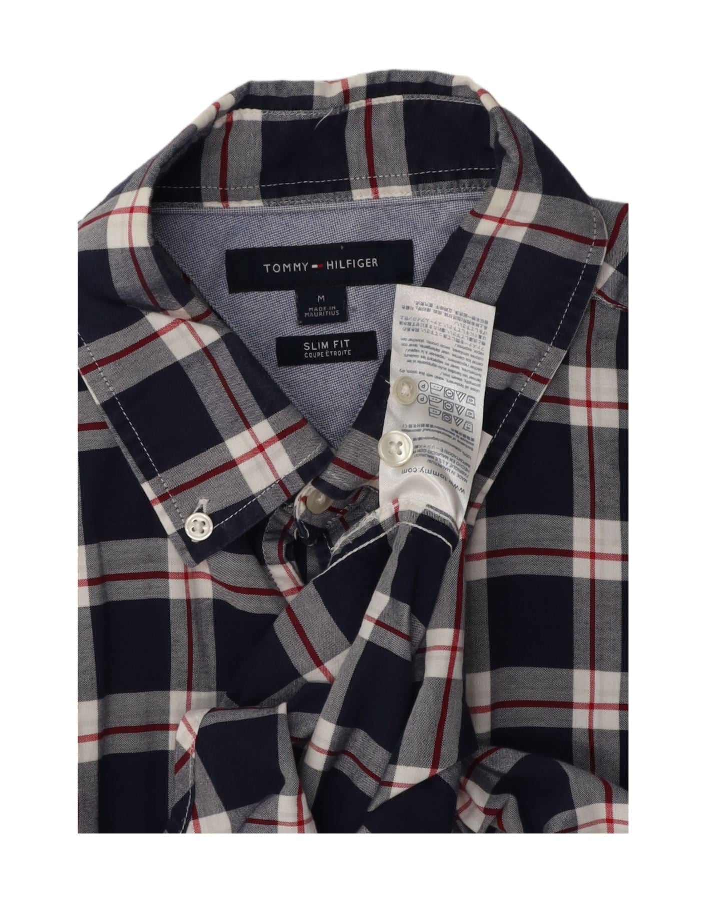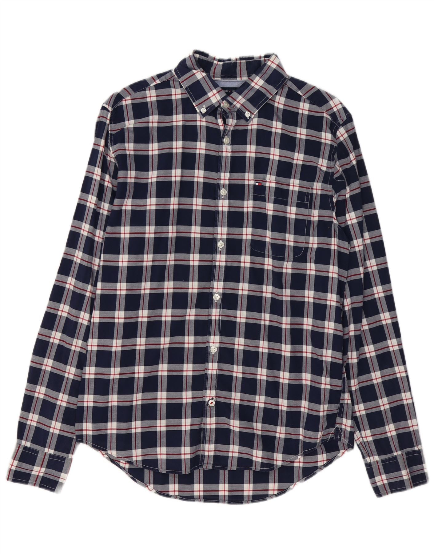 TOMMY HILFIGER Мужская фланелевая рубашка приталенного кроя среднего размера, темно-синяя клетка, хлопок