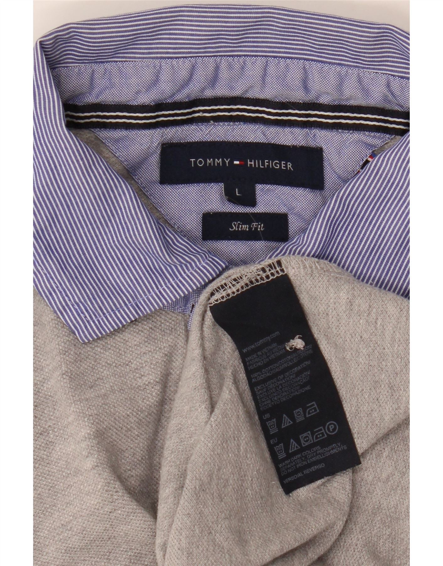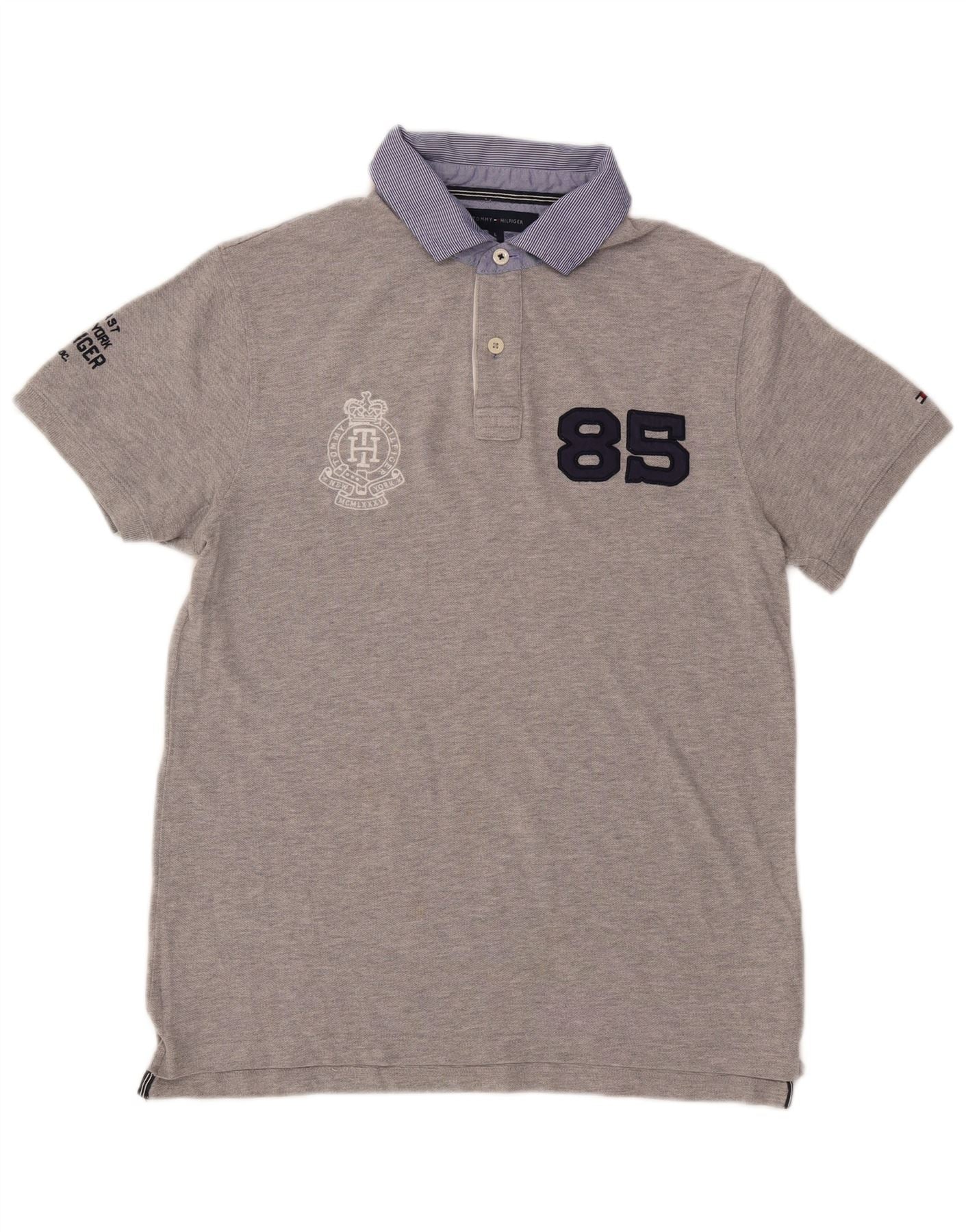 TOMMY HILFIGER Мужская рубашка-поло приталенного кроя с рисунком, большая серая хлопковая рубашка