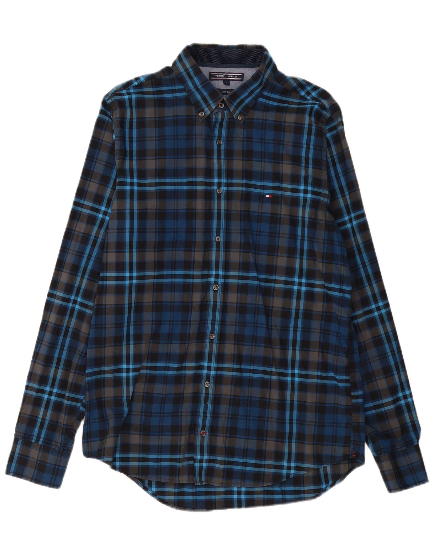 TOMMY HILFIGER Мужская рубашка приталенного кроя, большой размер, темно-синяя клетка, хлопок