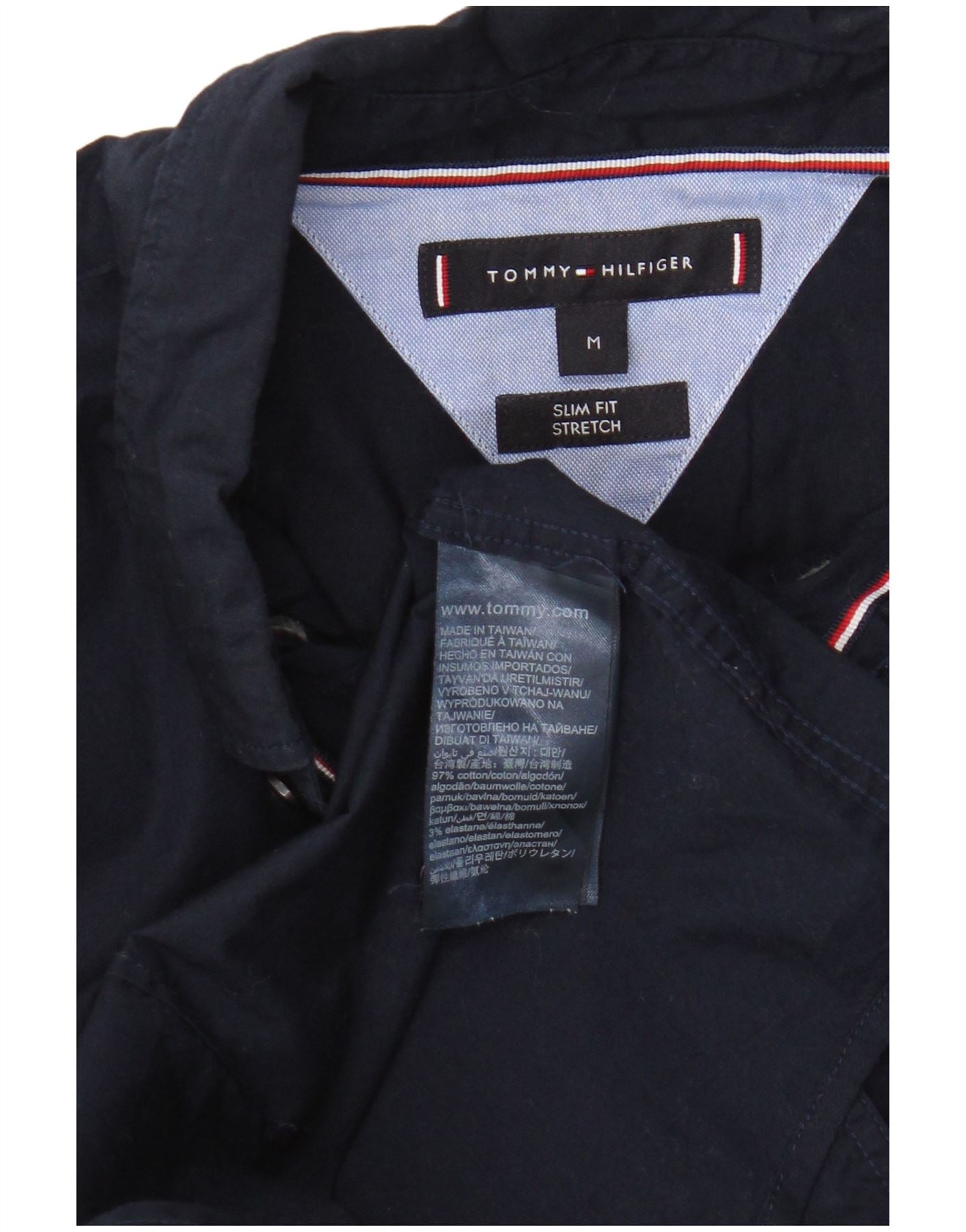 Tommy Hilfiger Мужская рубашка приталенного кроя, средний темно-синий хлопок