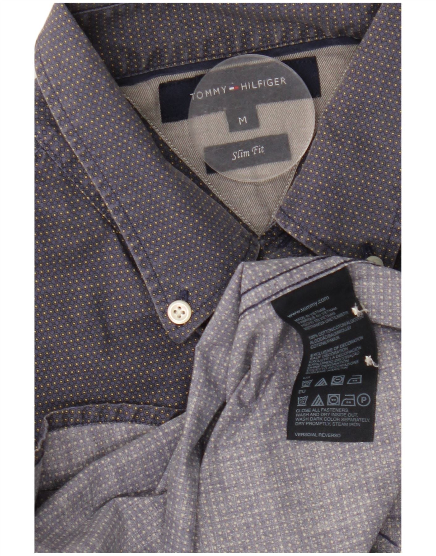 TOMMY HILFIGER Мужская рубашка приталенного кроя, средний темно-синий пятнистый хлопок