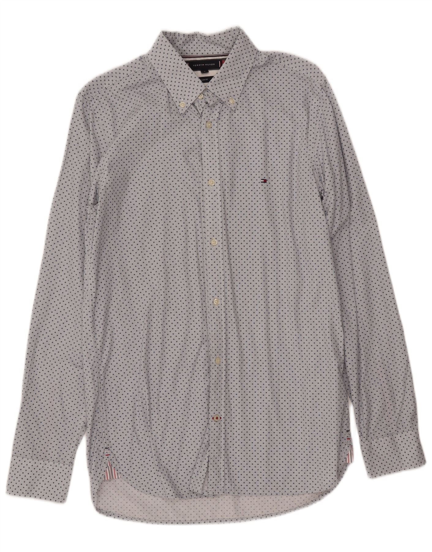 TOMMY HILFIGER Mens Slim Fit Shirt Medium White Spotted Cotton