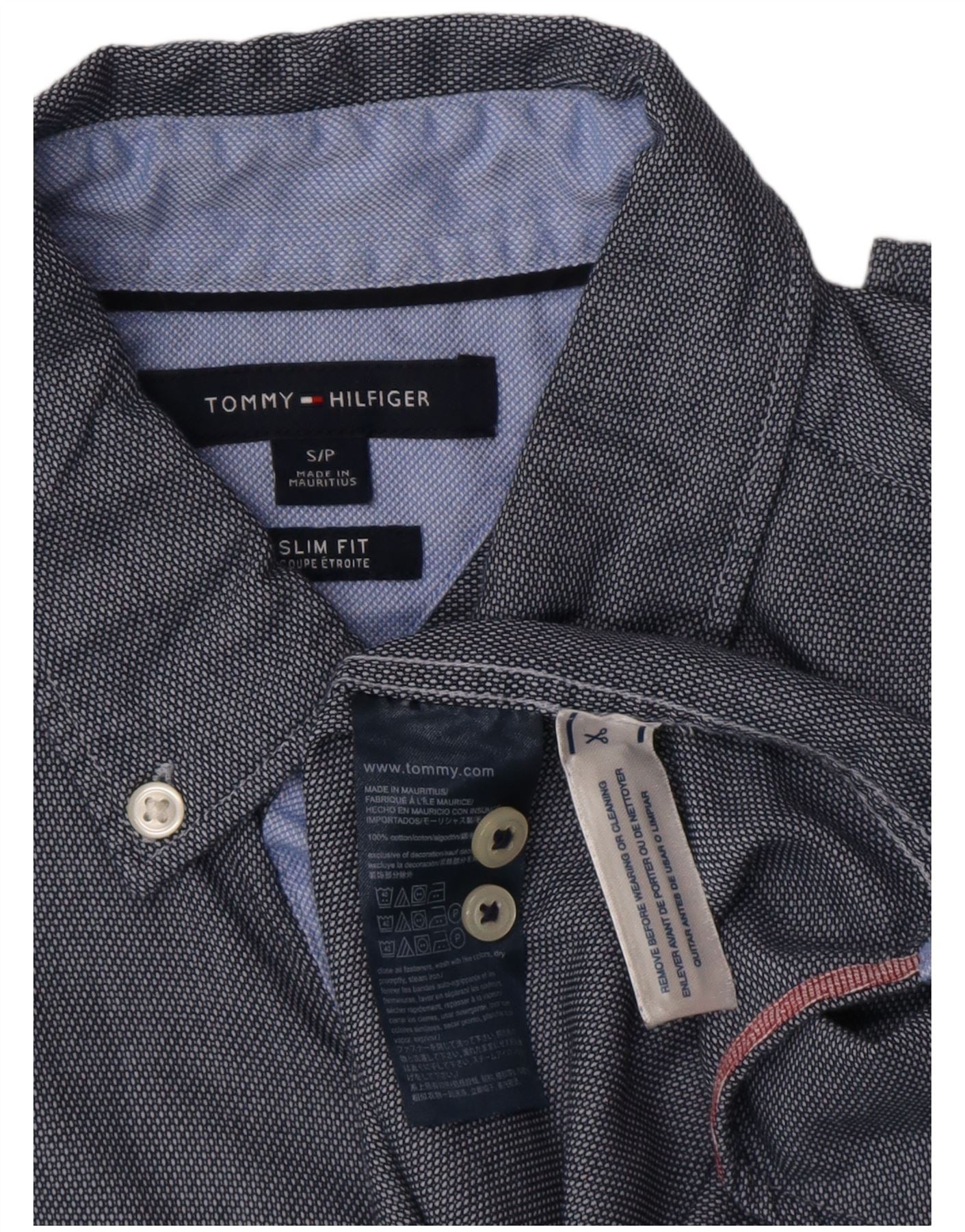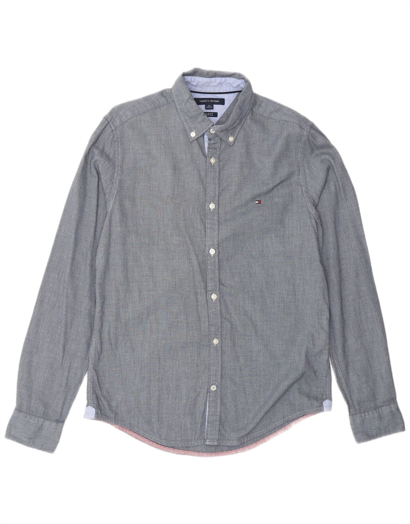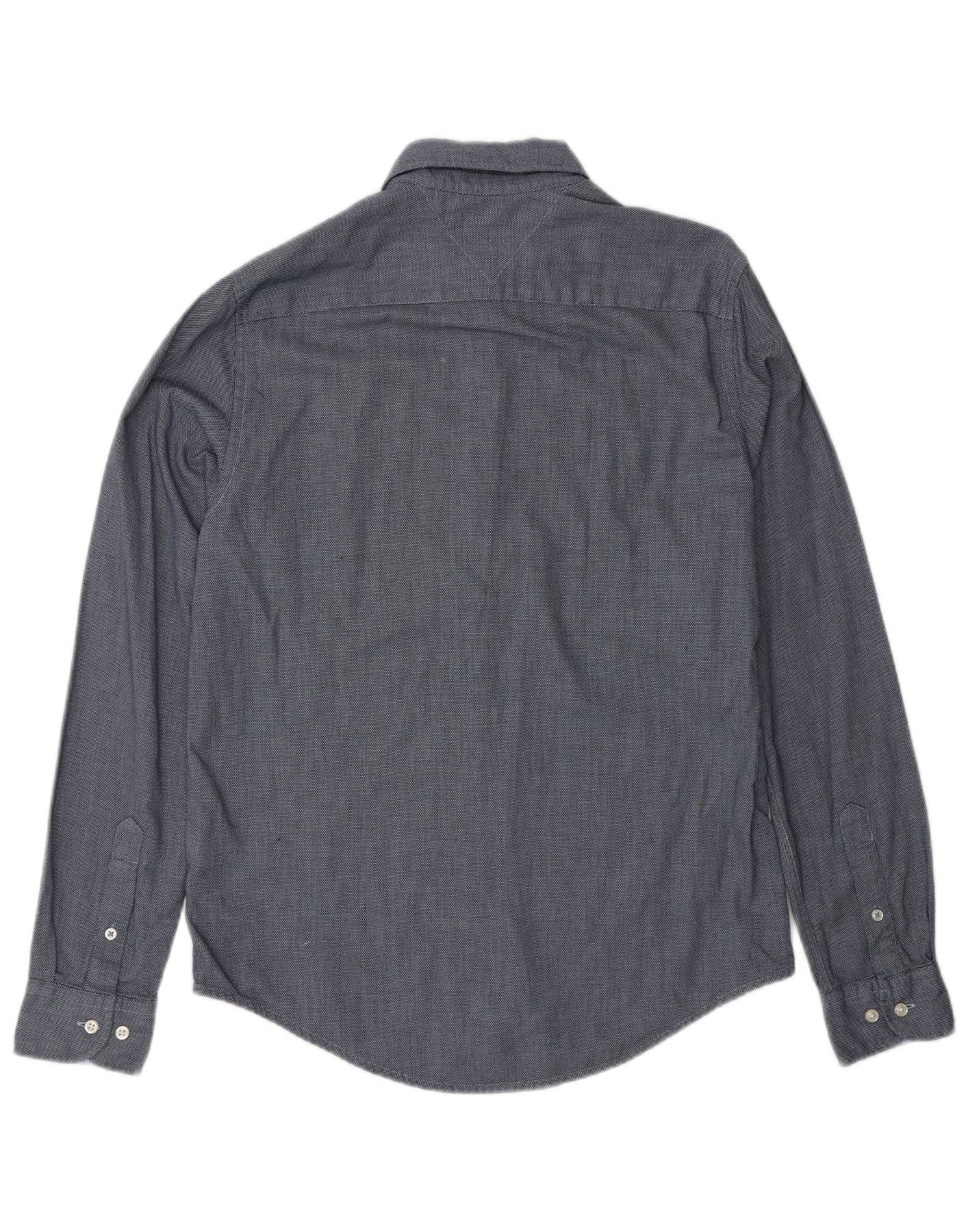 TOMMY HILFIGER Мужская рубашка приталенного кроя, маленький размер, темно-синий, хлопок
