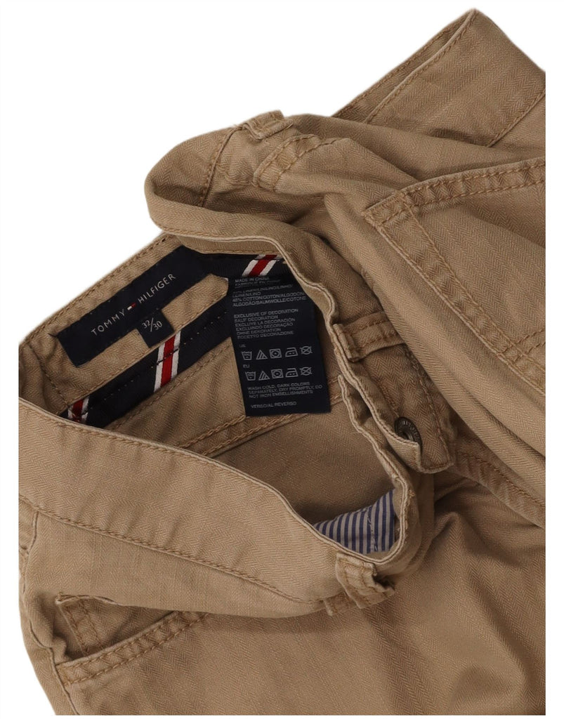 TOMMY HILFIGER Мужские прямые повседневные брюки W32 L30 Бежевые с рисунком «елочка»